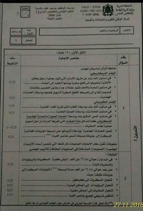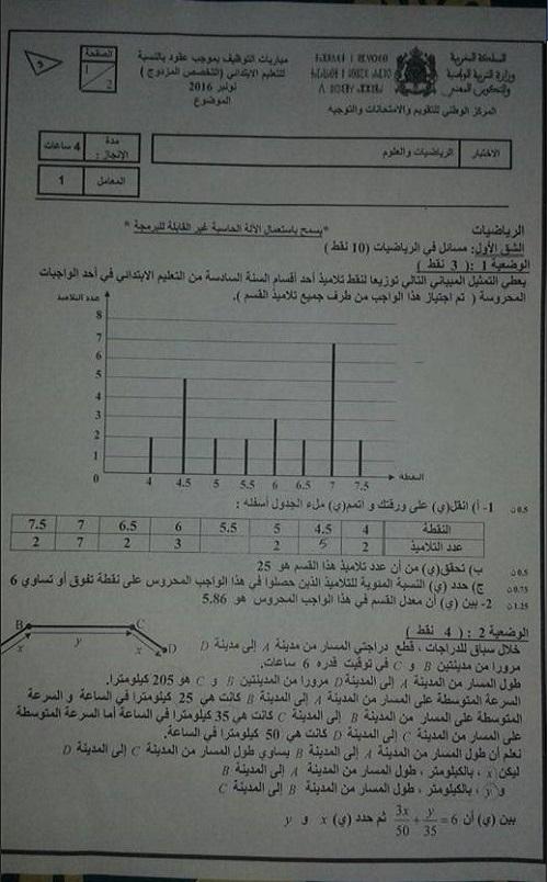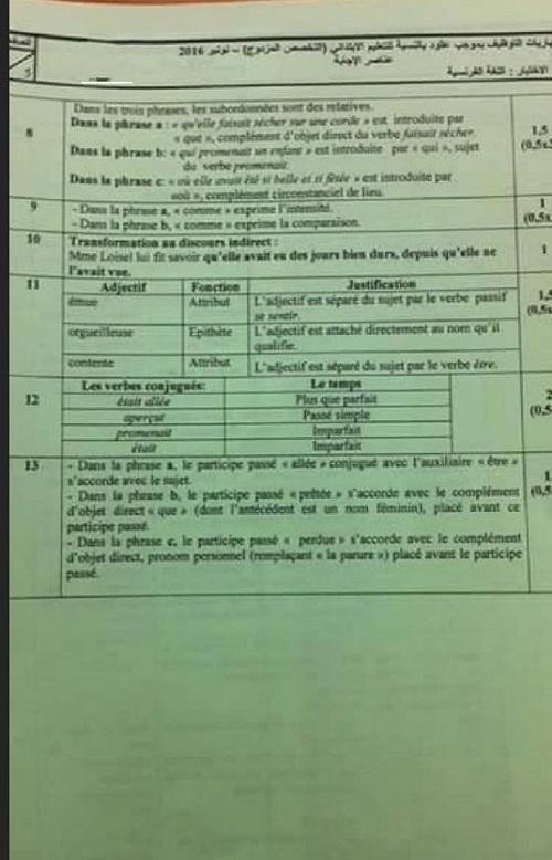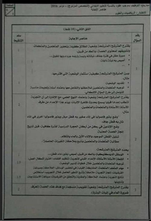 إختبارات مباراة التوظيف بالتعاقد -ابتدائي- لسنة 2016 مع عناصر الإجابة و أيضا سلم التنقيط.