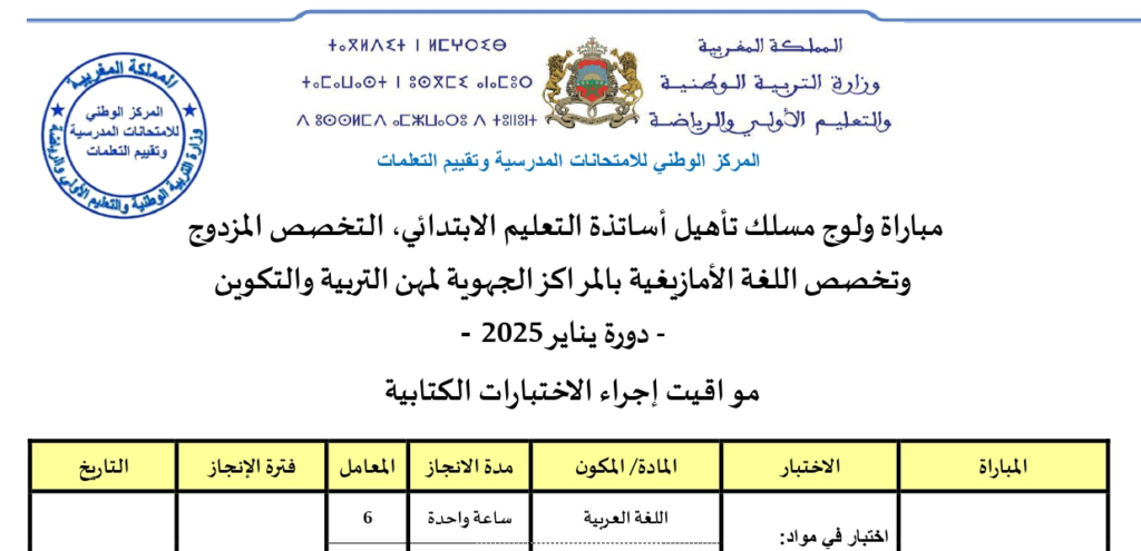 ​مواقيت إجراء الاختبارات الكتابية لمباراة التعليم 2025