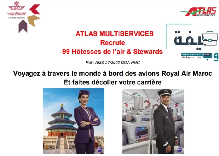 ATLAS MULTISERVICES Recrute 99 Hôtesses de l’air & Stewards