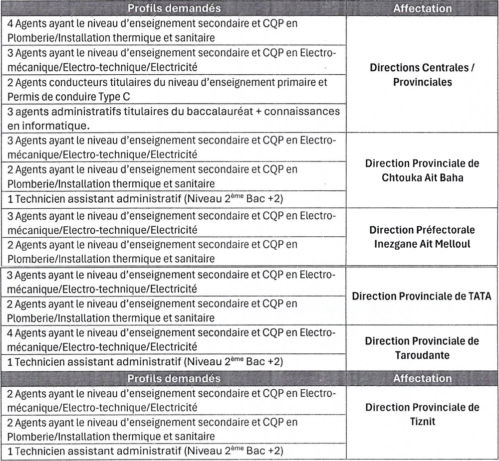 – Les dossiers contenant des profils supérieurs aux profils demandés ne seront pas pris en considération