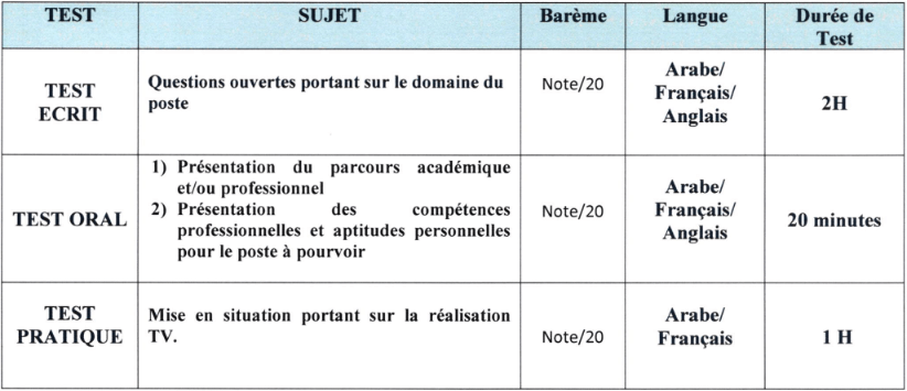 – La liste des candidats retenus pour passer les tests est publiée sur le site emploi-public.ma et sur la plateforme e-recrutement de la SNRT. La publication de cette liste vaut convocation des candidats admis pour le concours de recrutement.