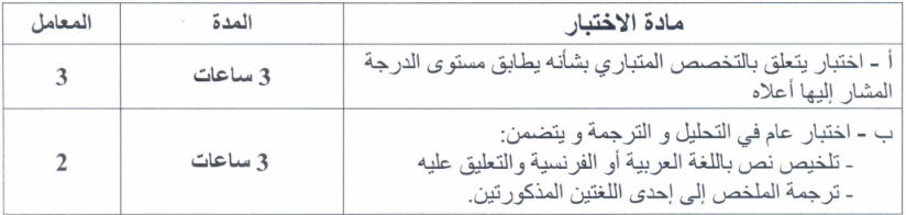 ولايقبل لاجتياز الاختبار الشفوي إلا المرشحون الحاصلون في الاختبارات الكتابية على معدل لا يقل عن 20/12 دون الحصول على نقطة إقصائية.