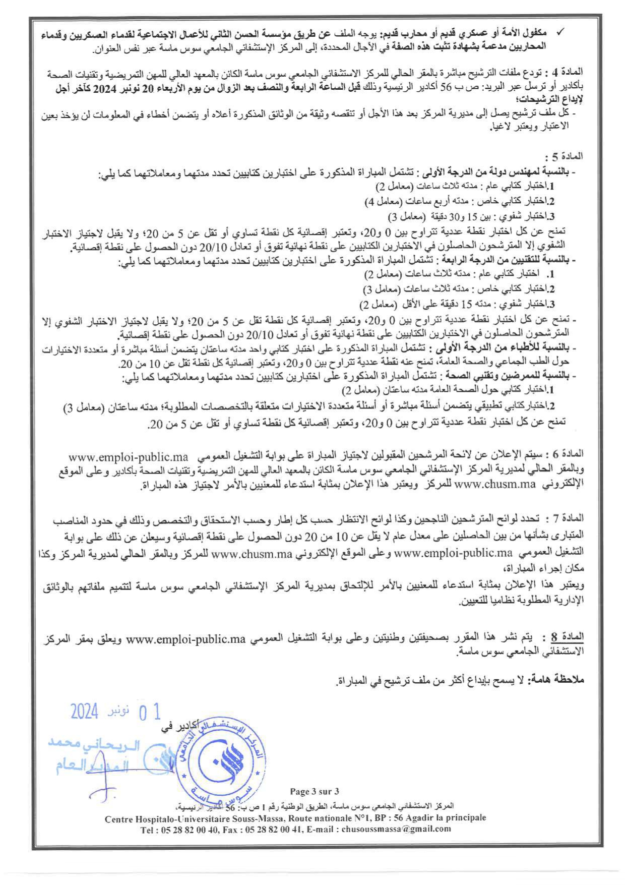 تاريخ إجراء المباراة هو 08 دجنبر 2024.