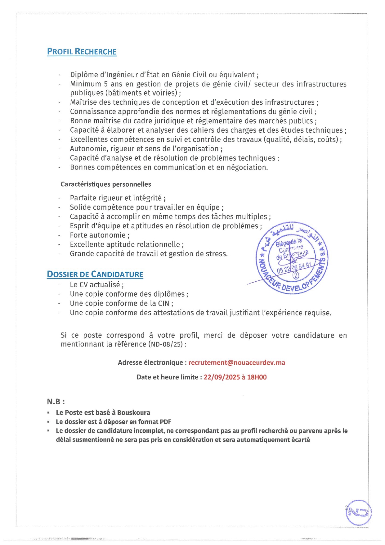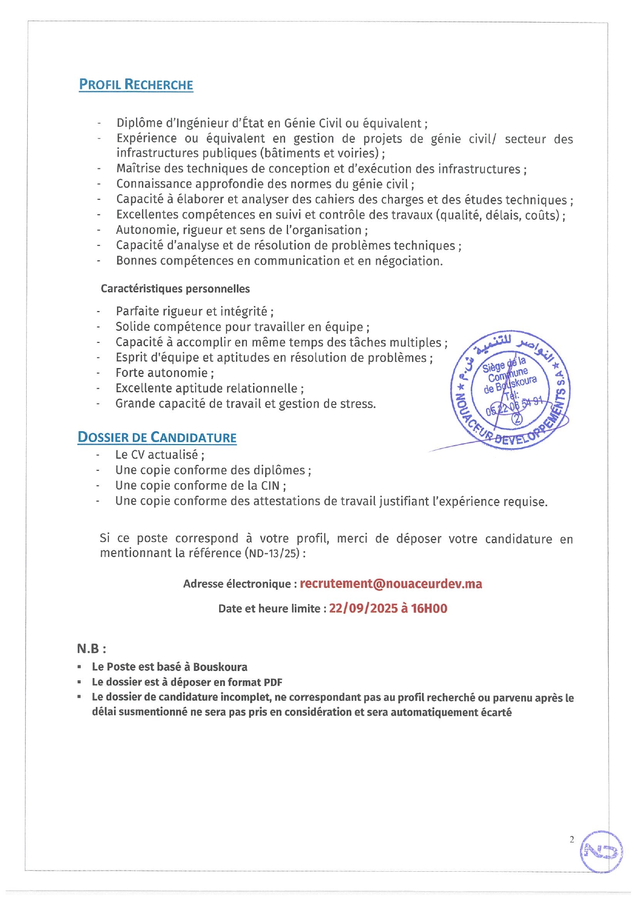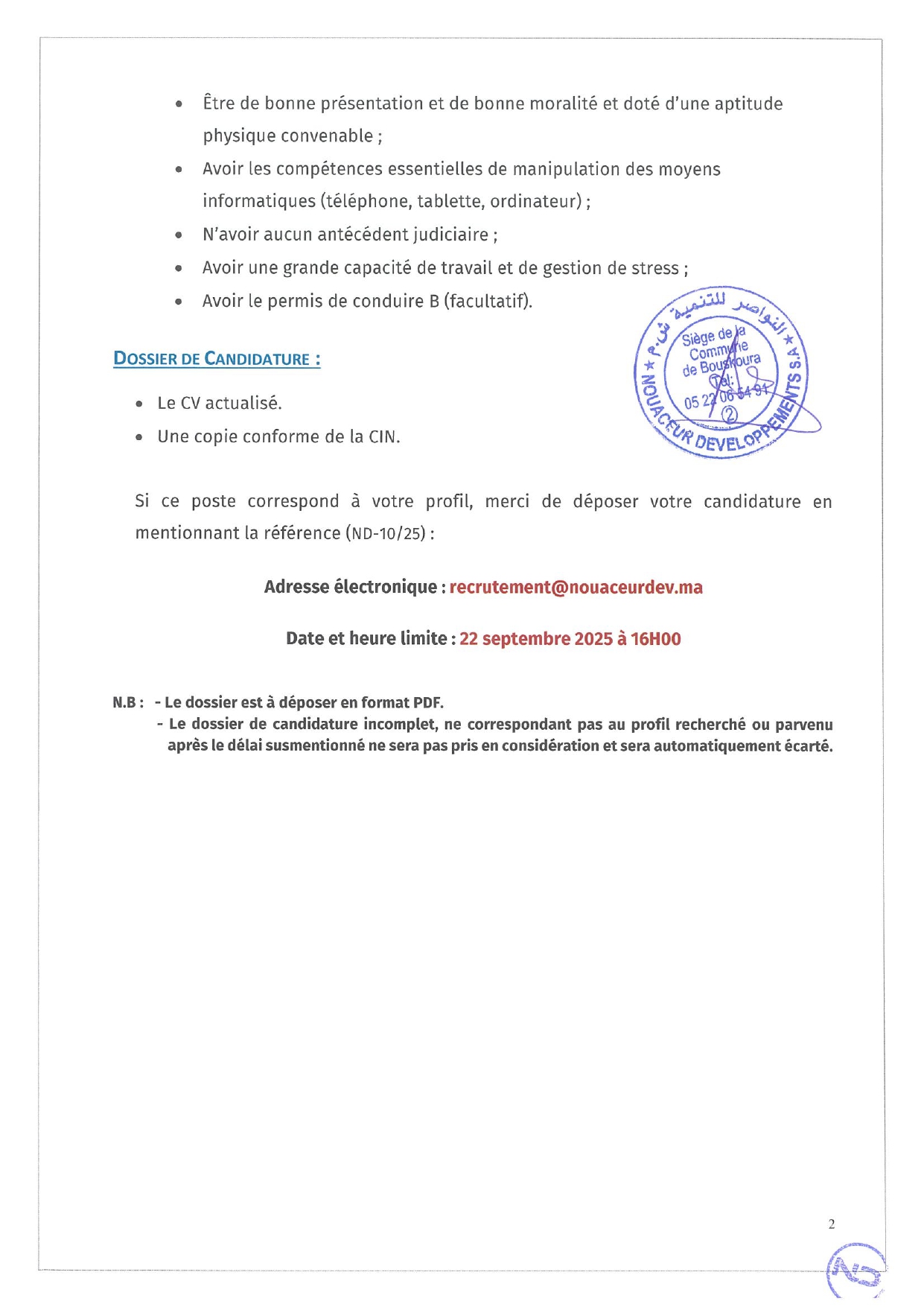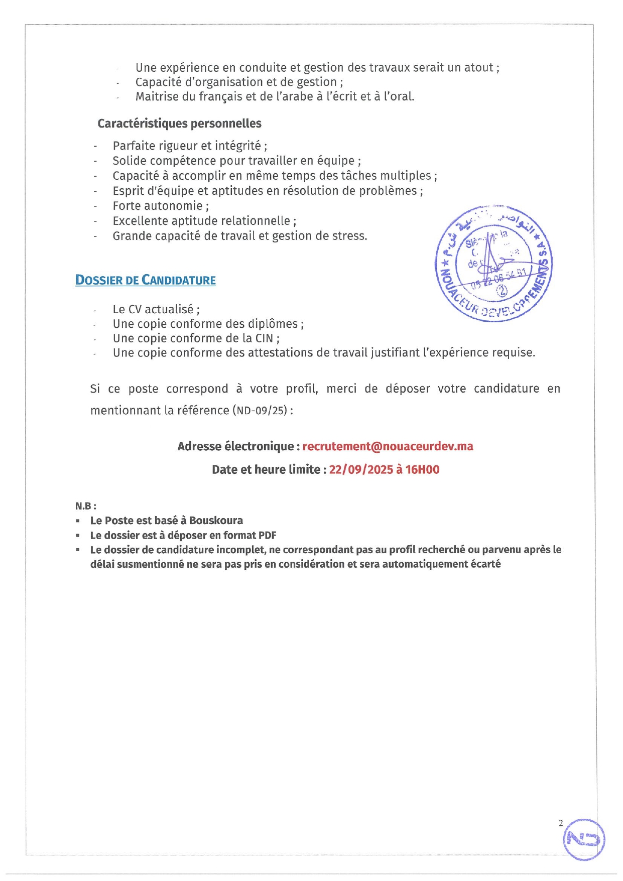أرسل ملف ترشيحك إلى البريد الإلكتروني التالي: recrutement@nouaceurdev.ma