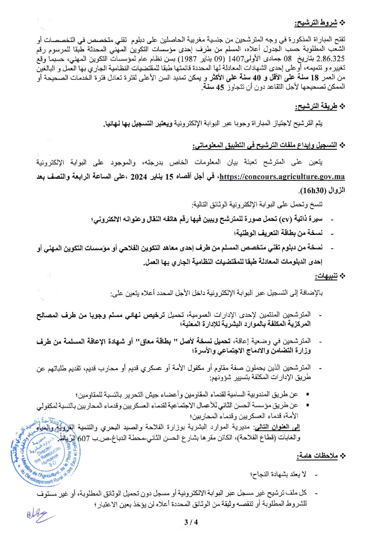 قطاع الفلاحة: مباراة توظيف 30 تقني من الدرجة الرابعة. آخر أجل هو 15 يناير 2024