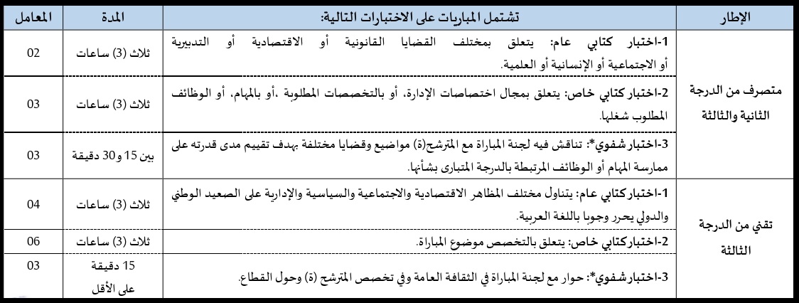 * يتأهل لاجتياز الاختبار الشفوي المترشحون الذين تم قبولهم واجتازوا الاختبارين الكتابيين وحصلوا على المعدل اللازم ووفق الشروط المحددة طبقا للمقتضيات التنظيمية المعمول بها حسب كل إطار وكذلك الدرجة المراد التوظيف فيهما.