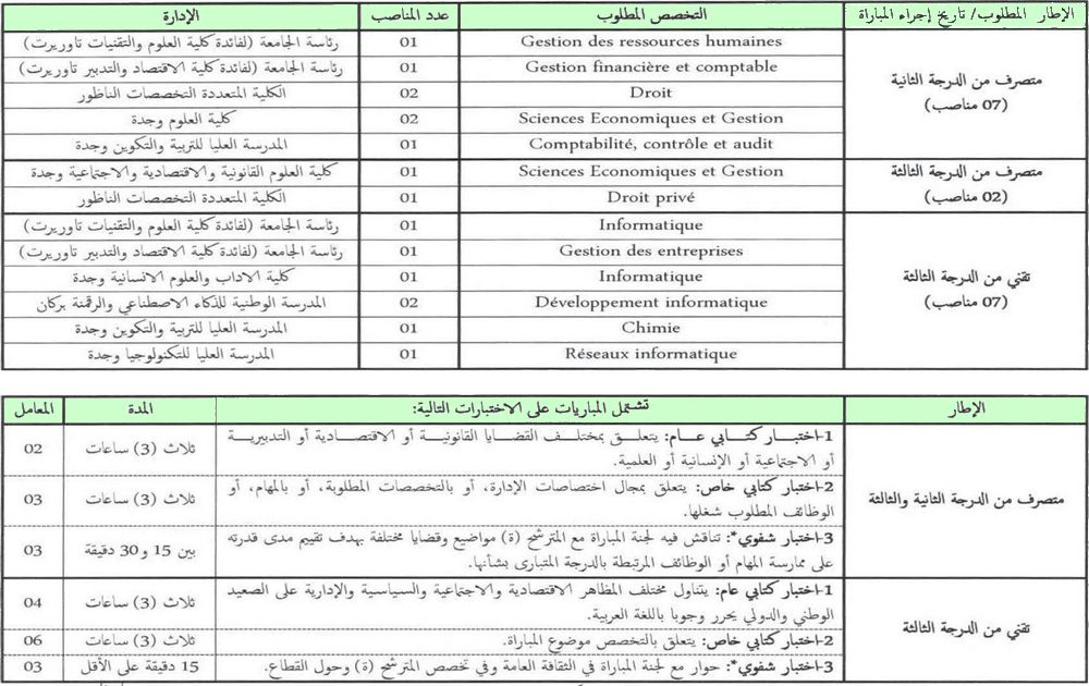 تنظم جامعة محمد الأول بوجدة يوم 12 أكتوبر 2025 مباريات لتوظيف 16 إداري وتقني، وذلك في التخصصات المشار إليها في الجدول أسفله: