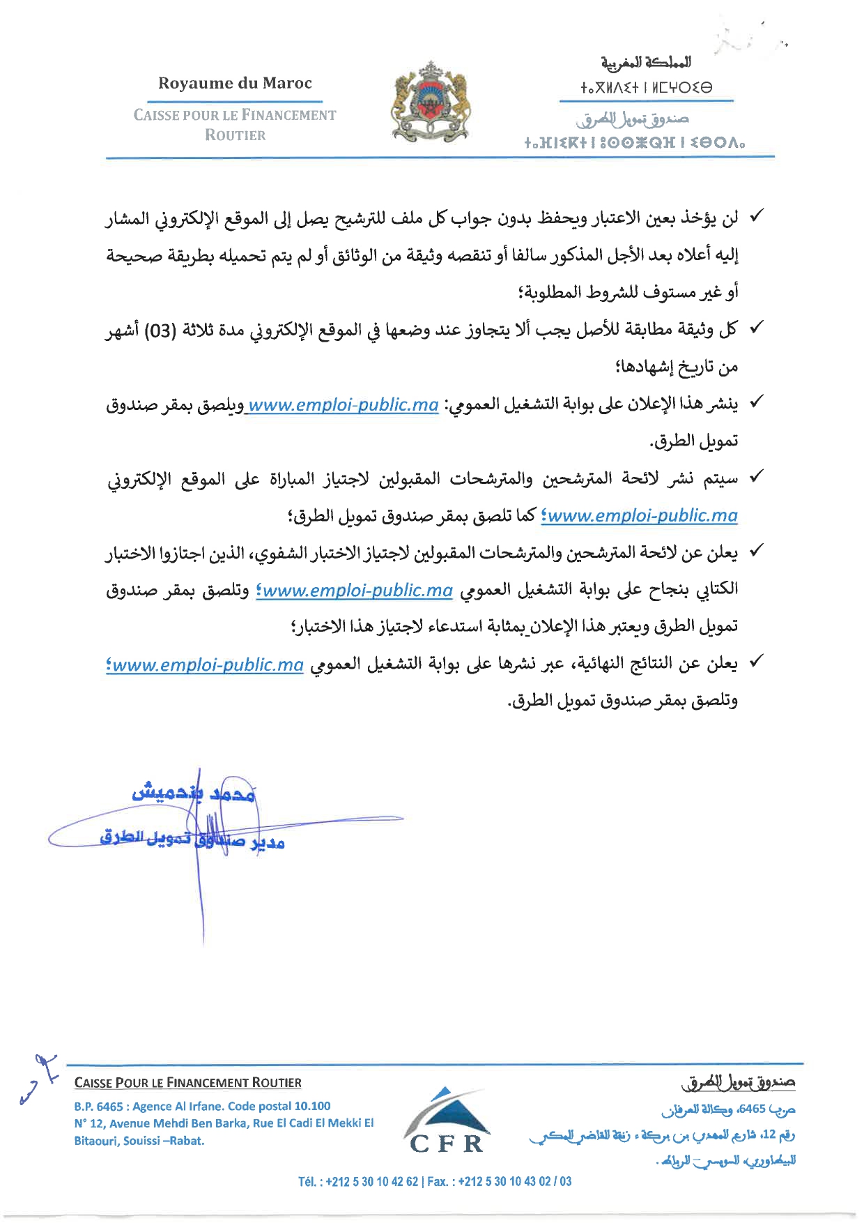صندوق تمويل الطرق الاعلان عن مباراة توظيف 1 متصرف من الدرجة الثانية آخر أجل 30 ماي 2025