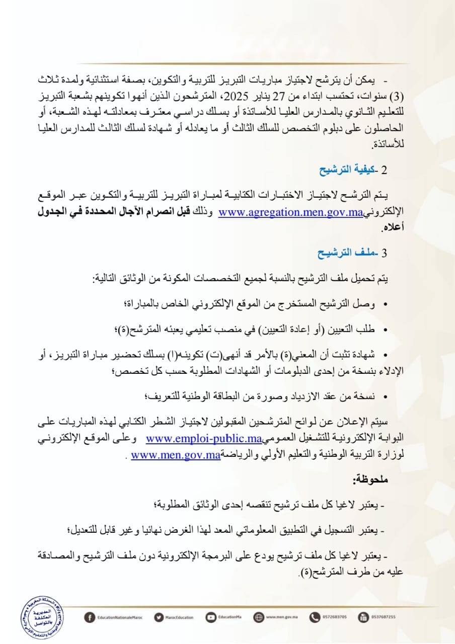 مباريات التبريز للتربية والتكوين دورة 2025-2026 agregation.men.gov.ma