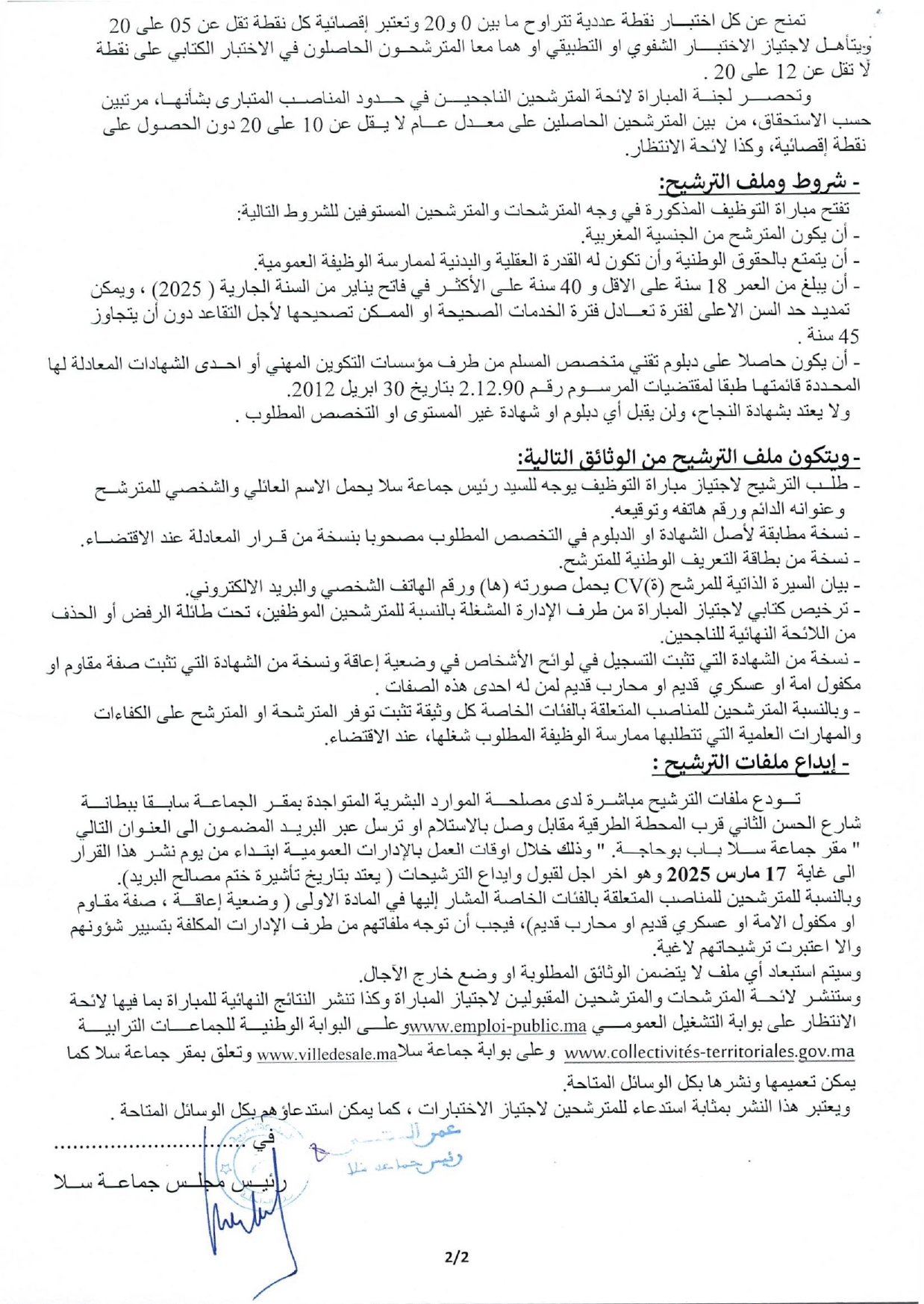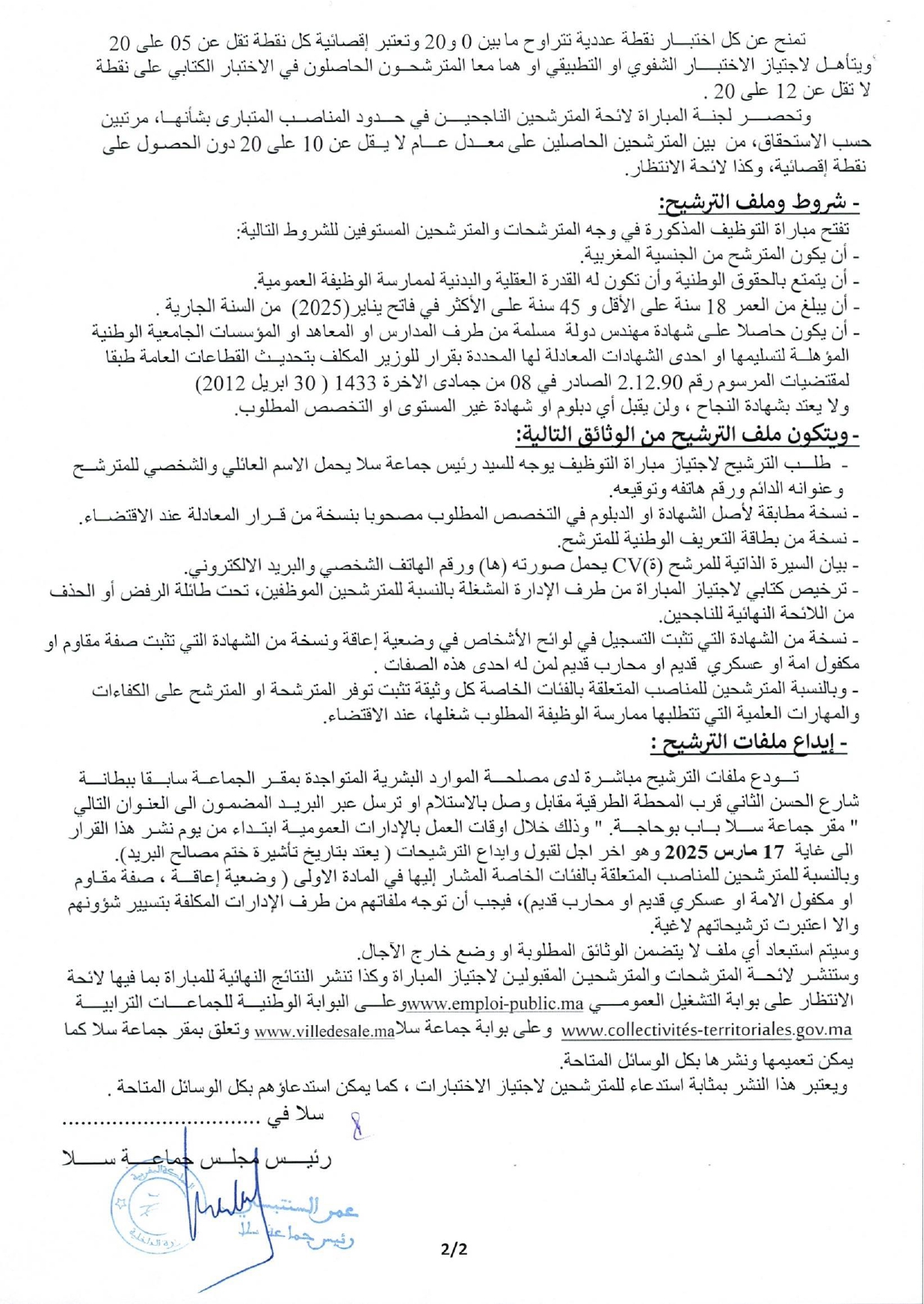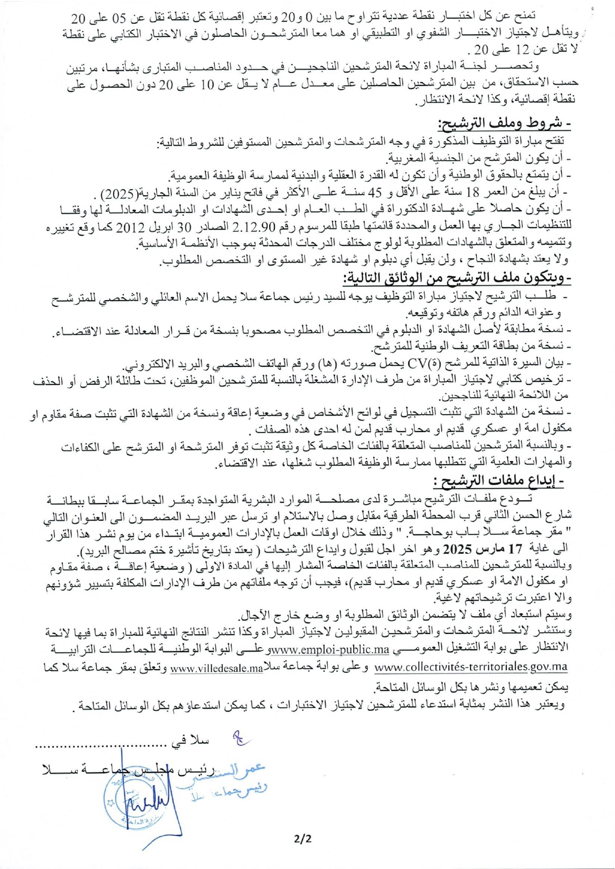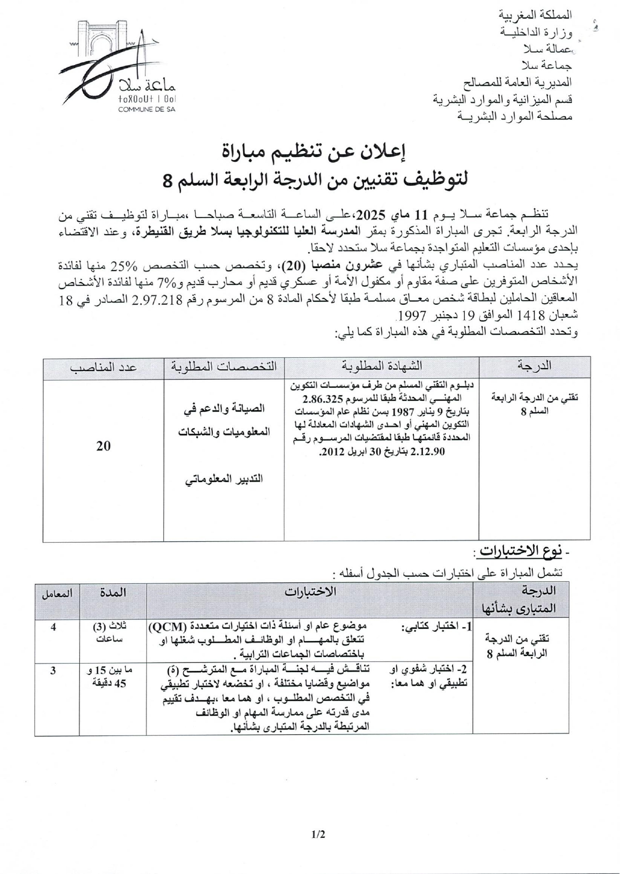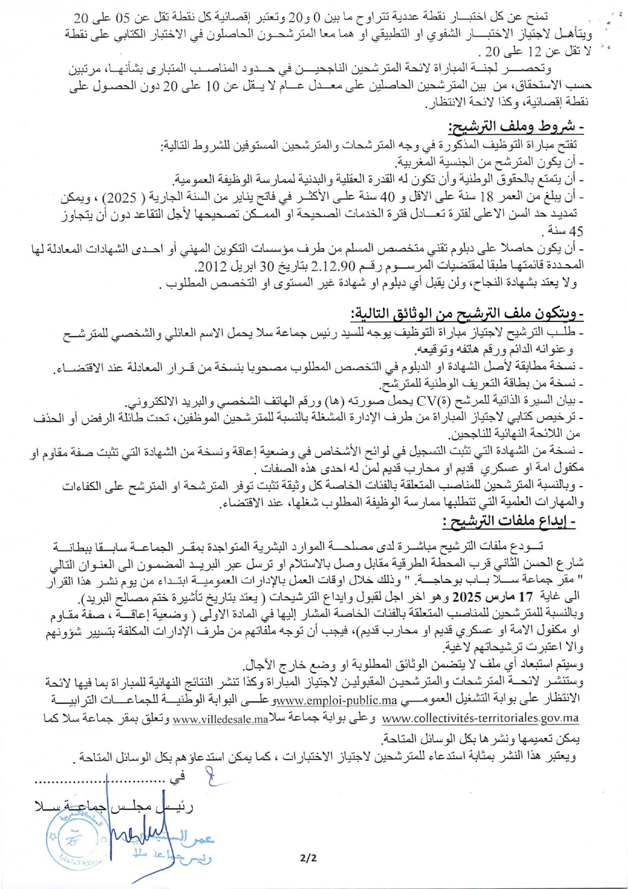 جماعة سلا: مباريات لتوظيف 95 منصبا في عدة تخصصات ودرجات. آخر أجل هو 17 مارس 2025