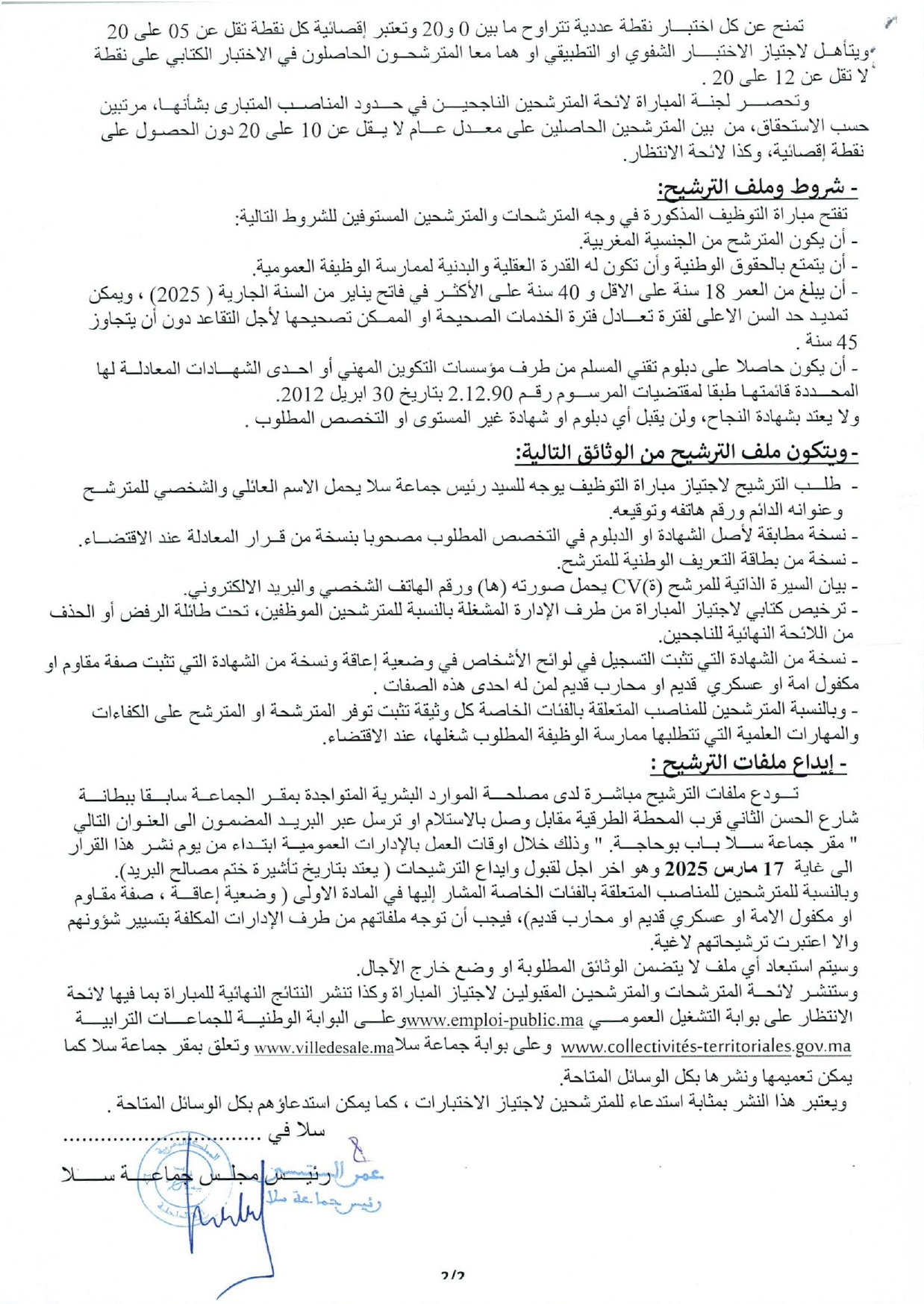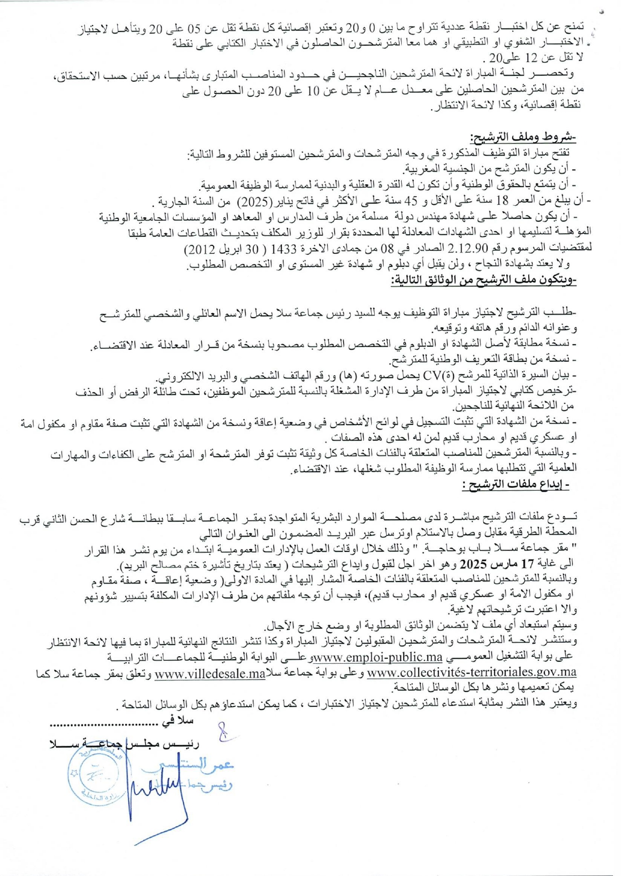 مباريات التوظيف بجماعة سلا 2025 (95 منصب)