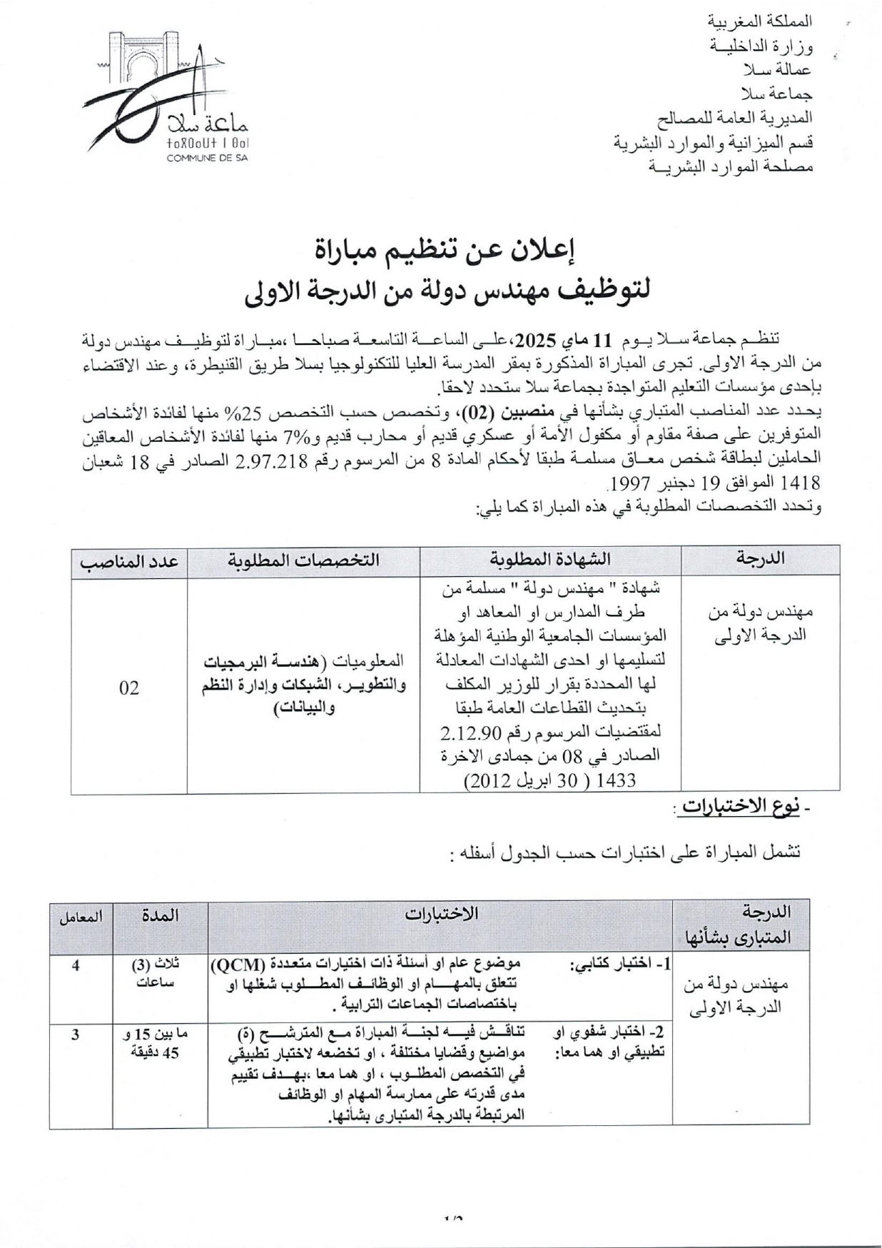 مباريات التوظيف بجماعة سلا 2025 (95 منصب) مباريات التوظيف بجماعة سلا 2025 (95 منصب)