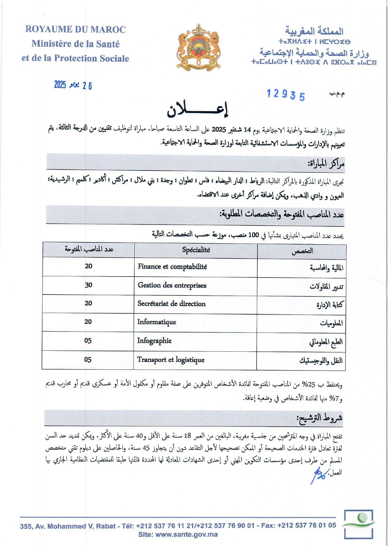 مباريات توظيف 300 منصب بوزارة الصحة والحماية الاجتماعية 2025
