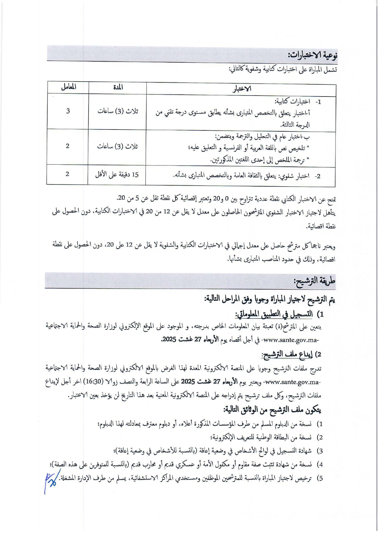 مباراة التوظيف بوزارة الصحة والحماية الاجتماعية 2025