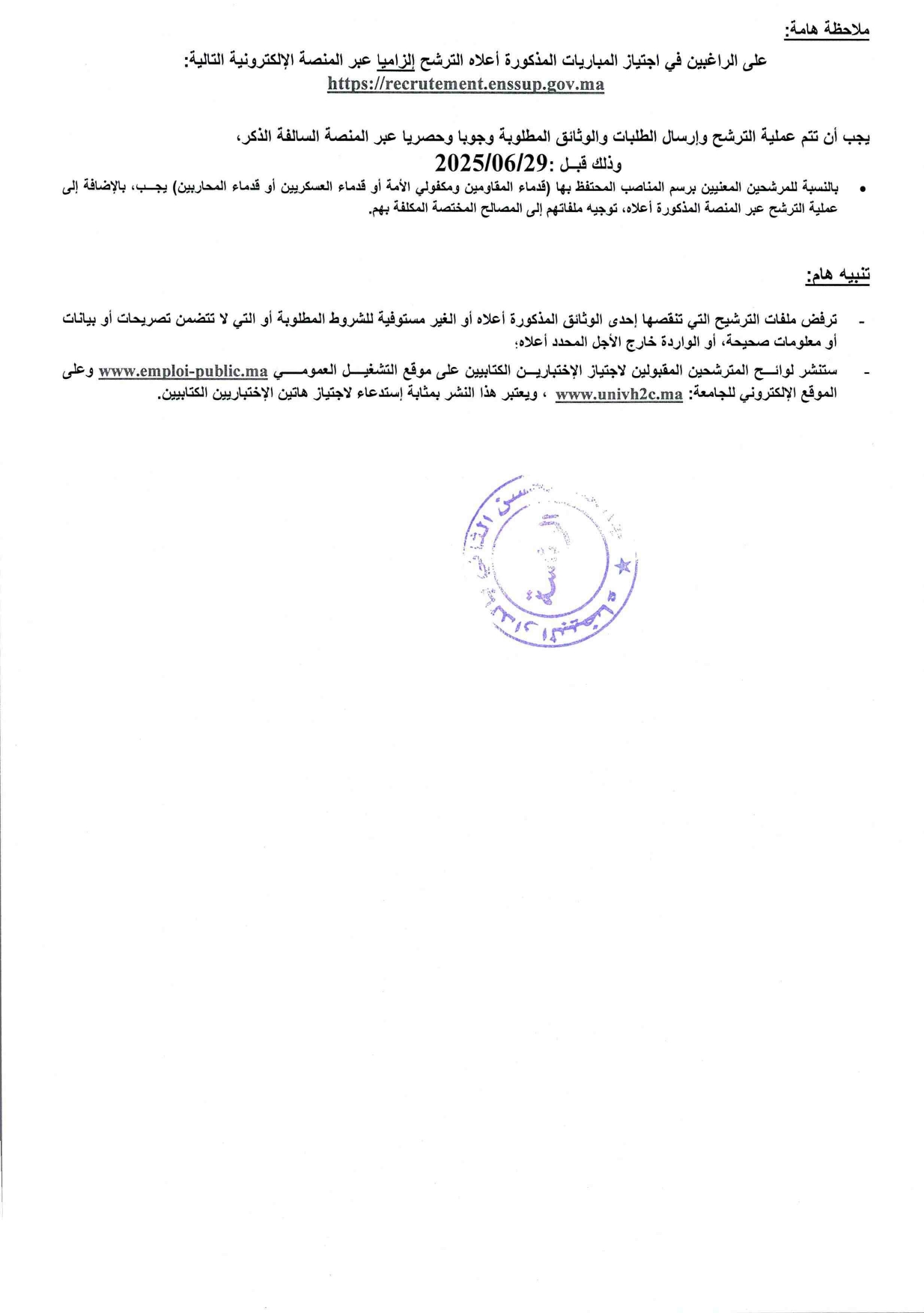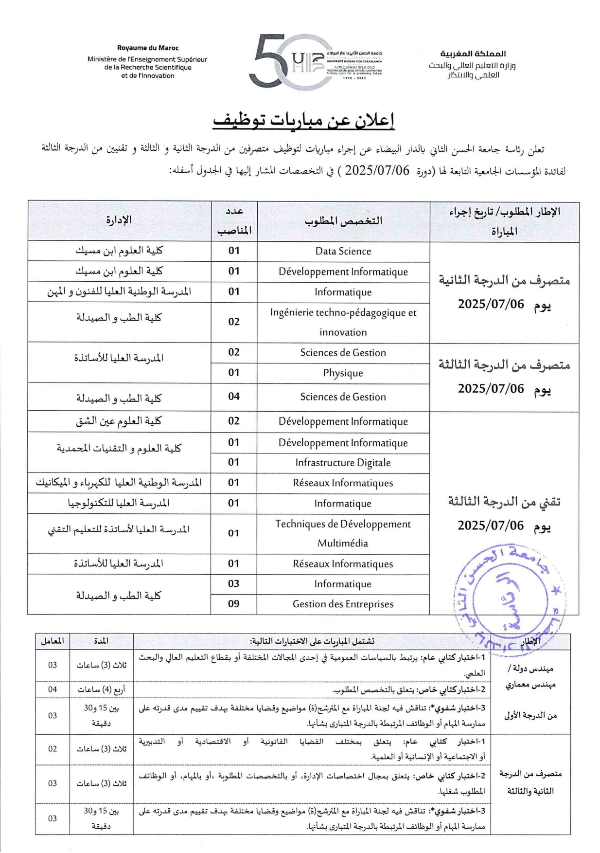 مباراة جامعة الحسن الثاني 2025 (32 منصبا)