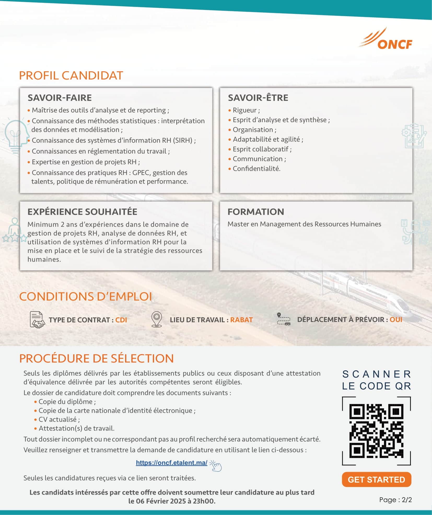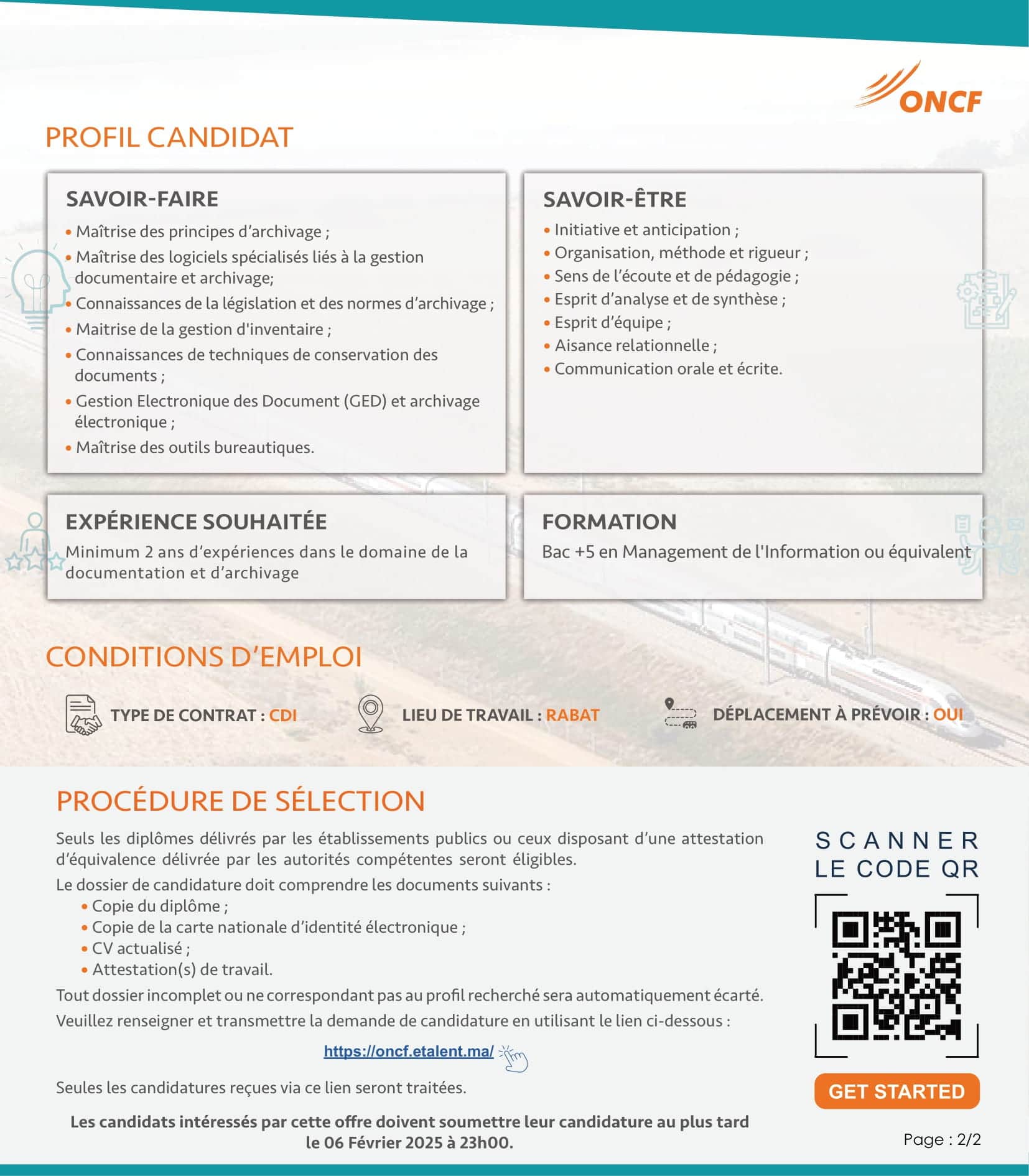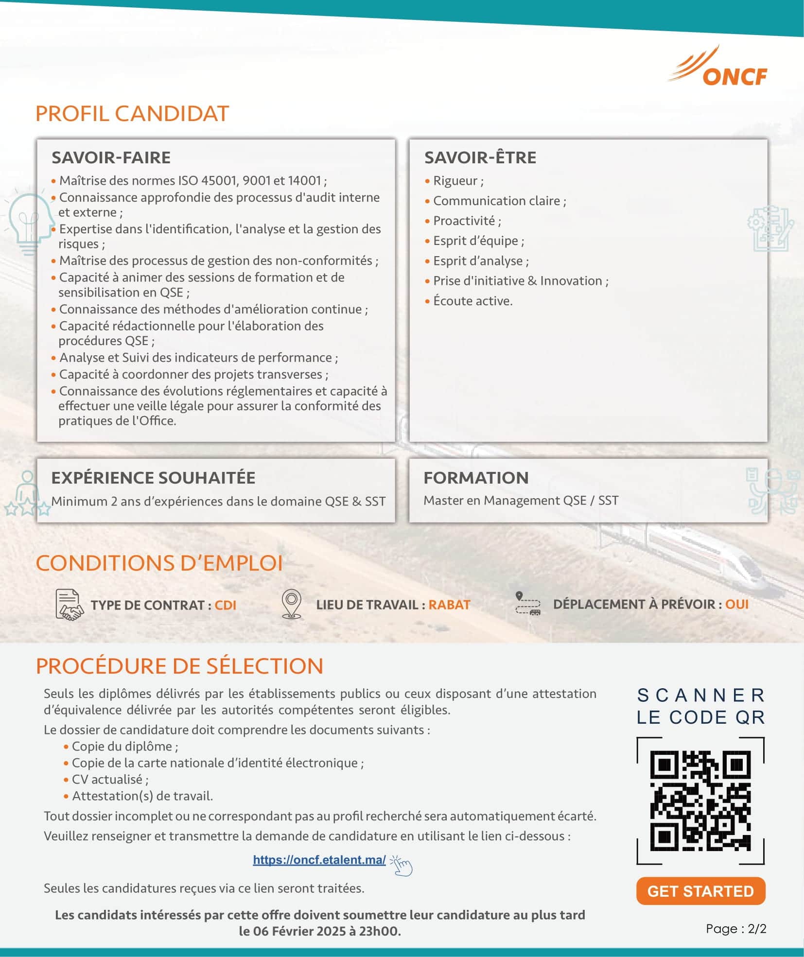 يُطلب من المهتمين تقديم طلباتهم عبر البوابة الإلكترونية https://oncf.etalent.ma قبل تاريخ 6 فبراير 2025 على الساعة 23:00. يجب أن يتضمن الملف:
