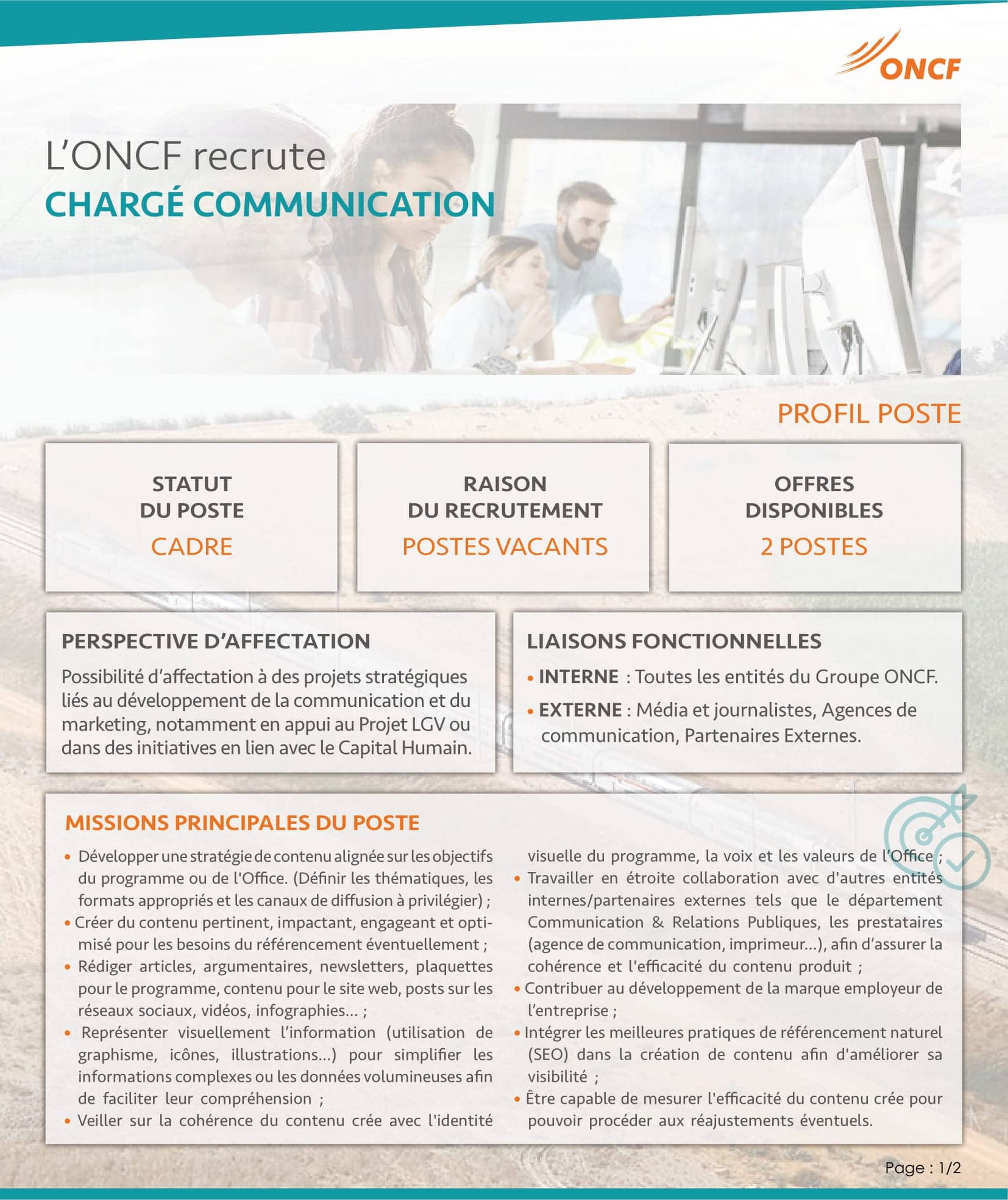 بفضل سمعته المتميزة والتزامه بالجودة، يبحث المكتب الوطني للسكك الحديدية عن كفاءات في مجالات متعددة للانضمام إلى فرقه الديناميكية والمساهمة في إنجاز مشاريع كبرى، مثل تطوير البنى التحتية، أنظمة النقل والمزيد.