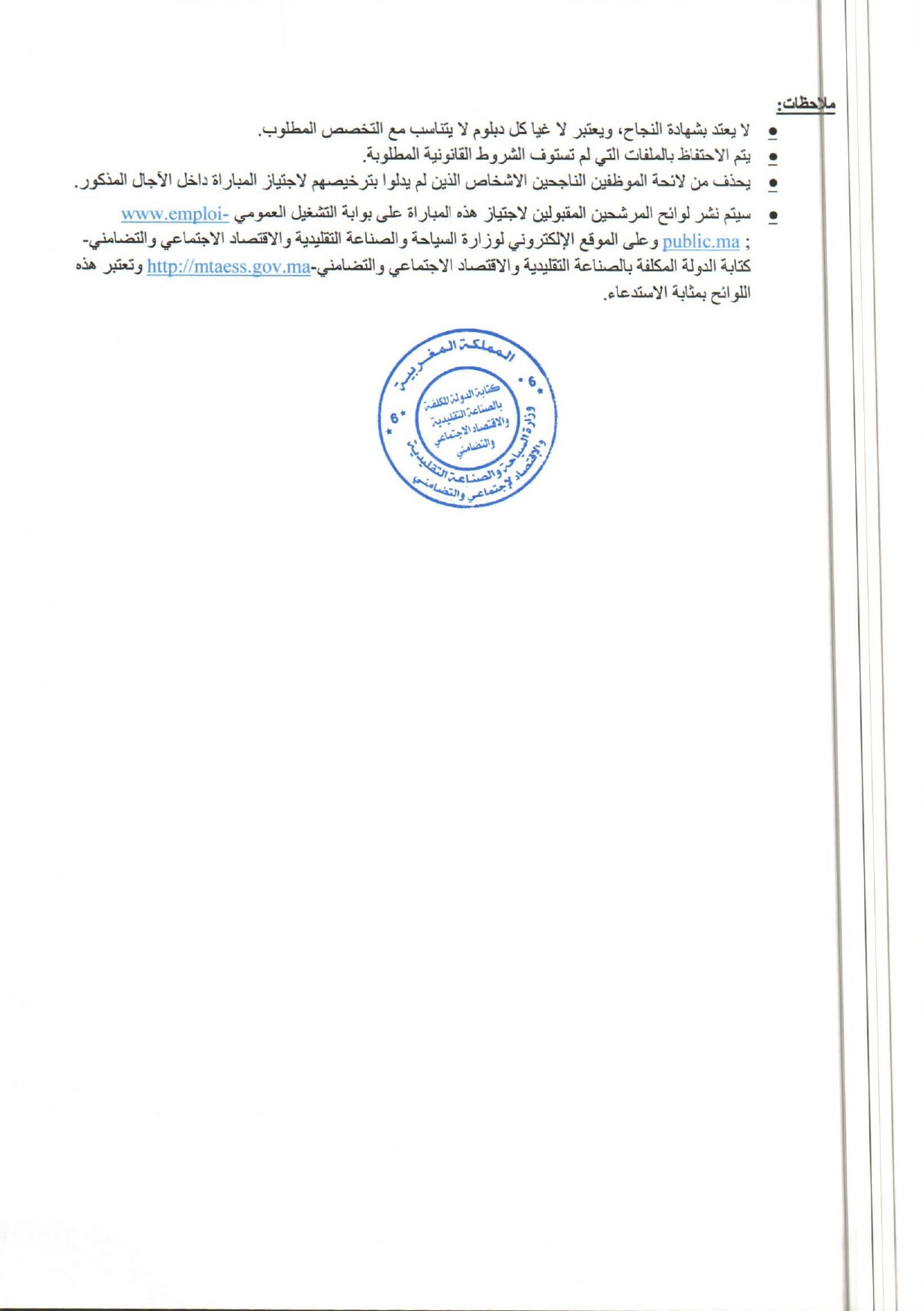تنظم وزارة السياحة والصناعة التقليدية والاقتصاد الاجتماعي والتضامني – قطاع الصناعة التقليدية والاقتصاد الاجتماعي والتضامني مباريات لتوظيف 20 منصب موزعين كالتالي: