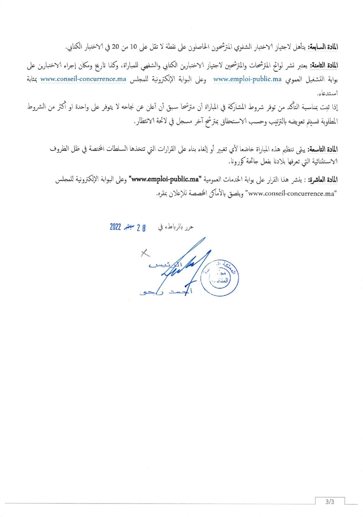 مباراة توظيف 3 مناصب بمجلس المنافسة