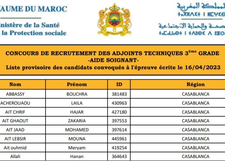 لائحة المدعوين لإجراء مباراة توظيف 50 مساعد تقني من الدرجة الثانية بوزارة الصحة والحماية الاجتماعية