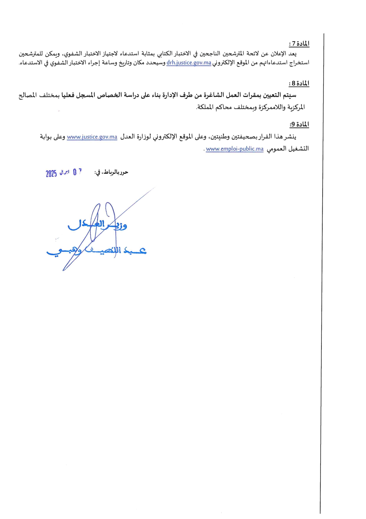 نتائج مباراة المنتدبين القضائيين بوزارة العدل 2025