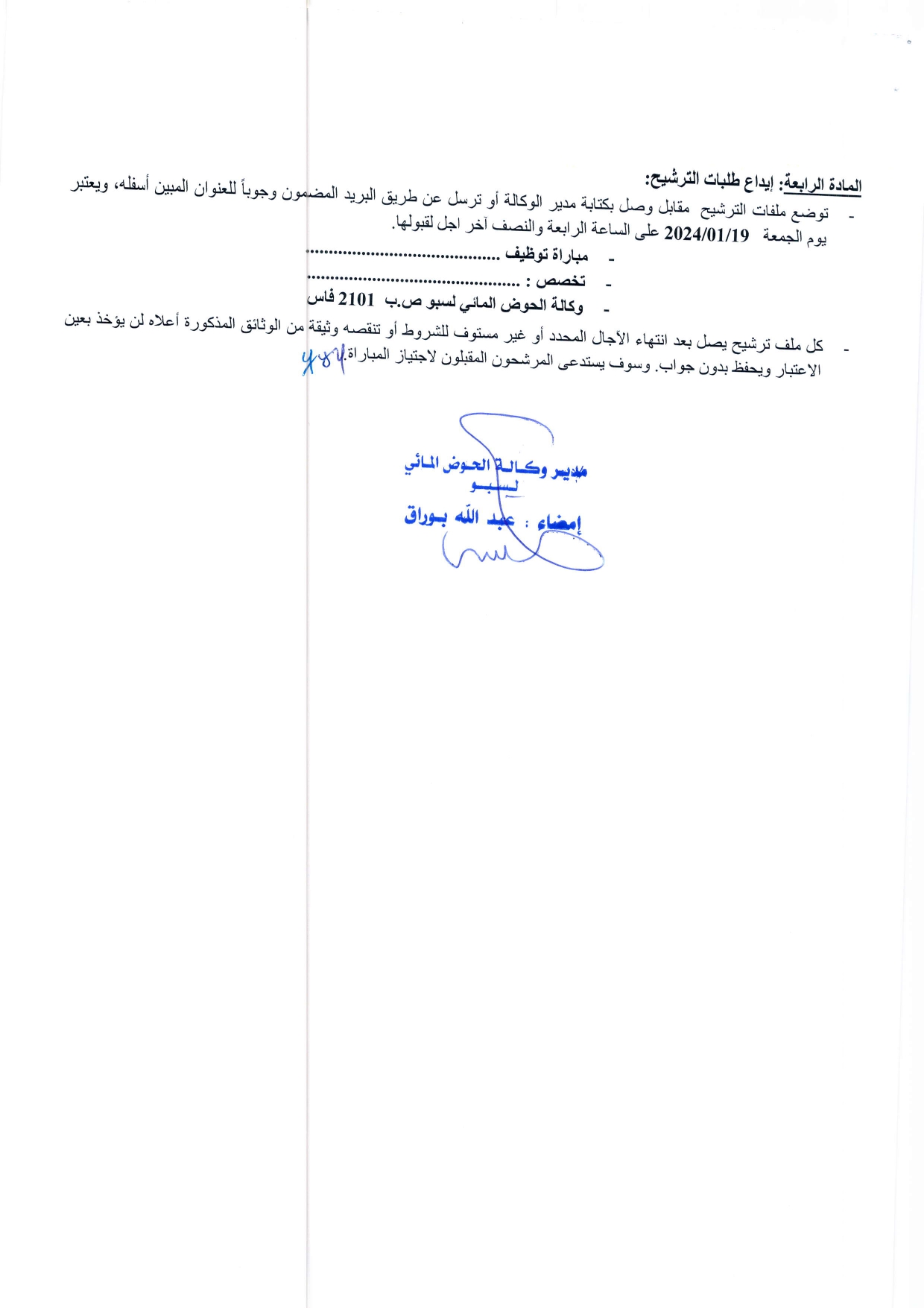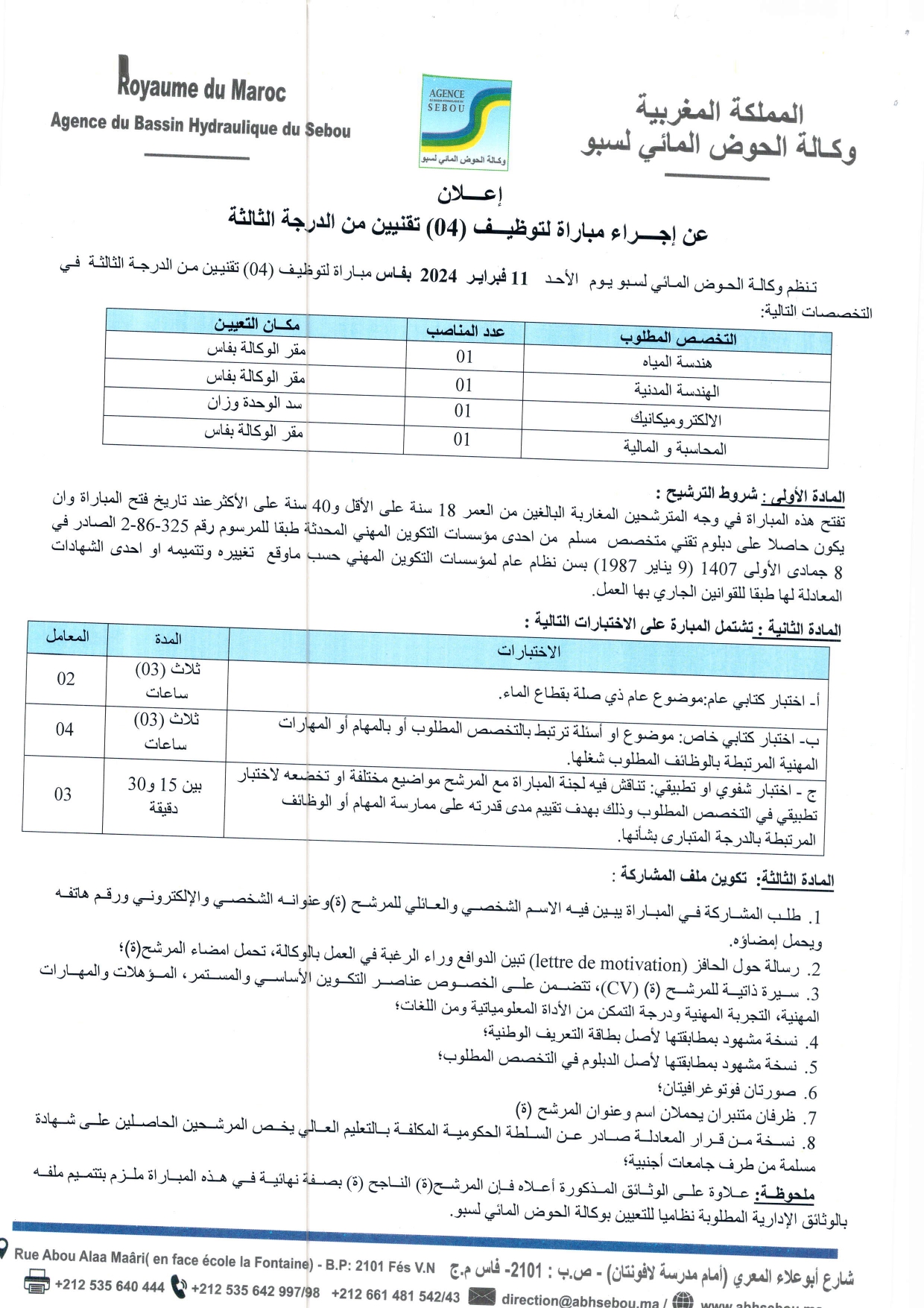 مباراة توظيف 4 مناصب بوكالة الحوض المائي لسبو 2024
