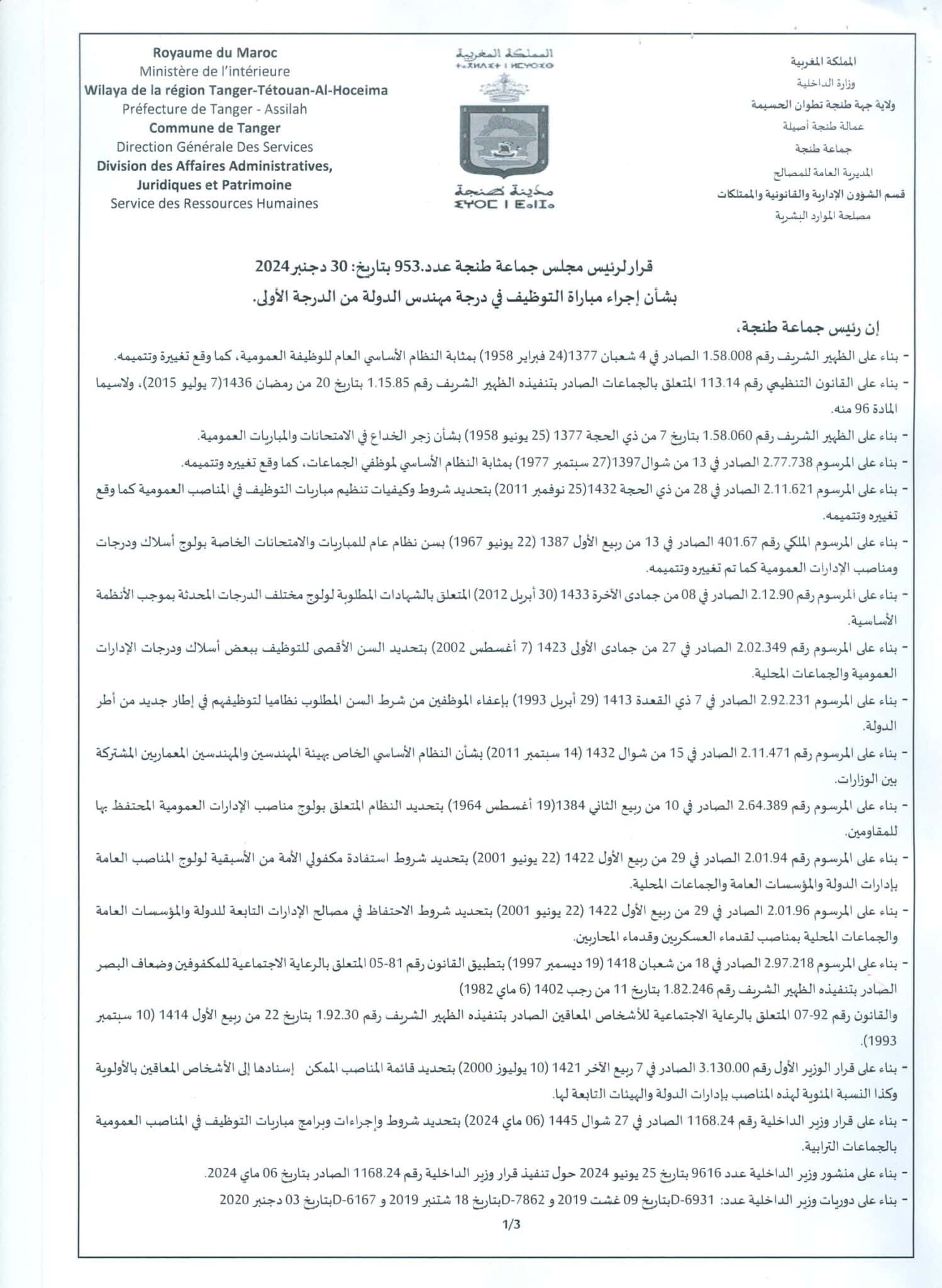 مباراة توظيف 22 منصب بوزارة الداخلية عمالة طنجة أصيلة 2025