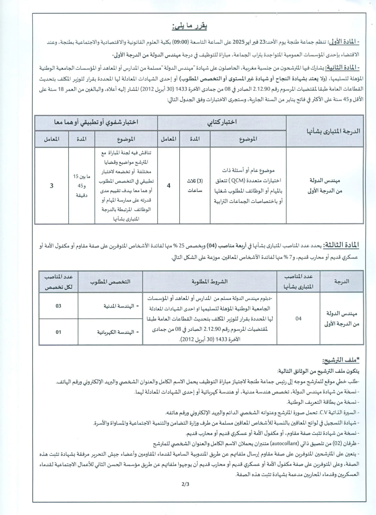La Préfecture de Tanger-Assilah organise un concours de recrutement en 2025 pour renforcer ses équipes dans plusieurs domaines techniques et administratifs. Avec des opportunités ouvertes aux profils qualifiés, ce concours est une occasion unique d’intégrer une administration engagée et dynamique.
