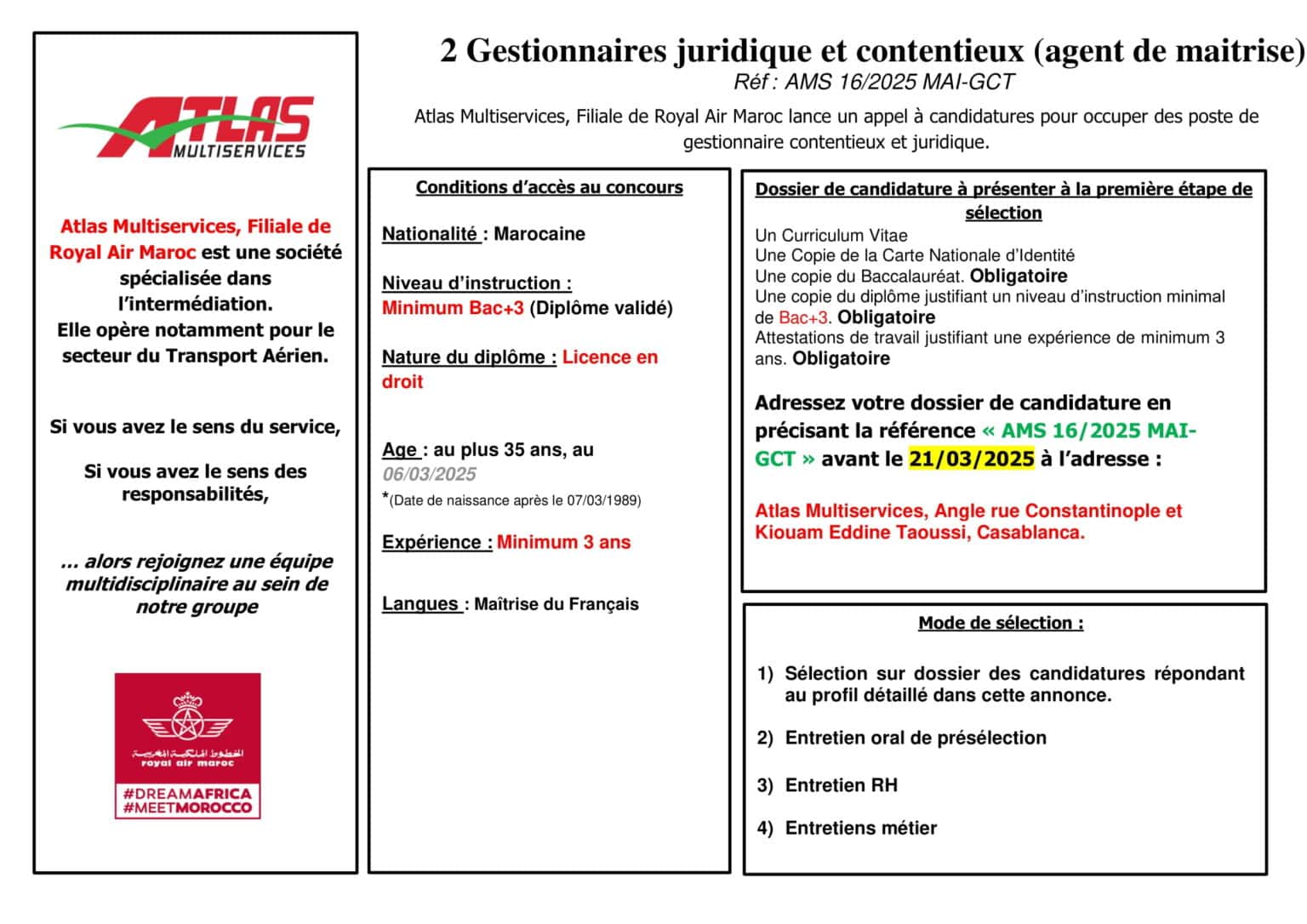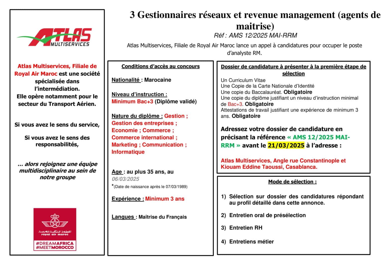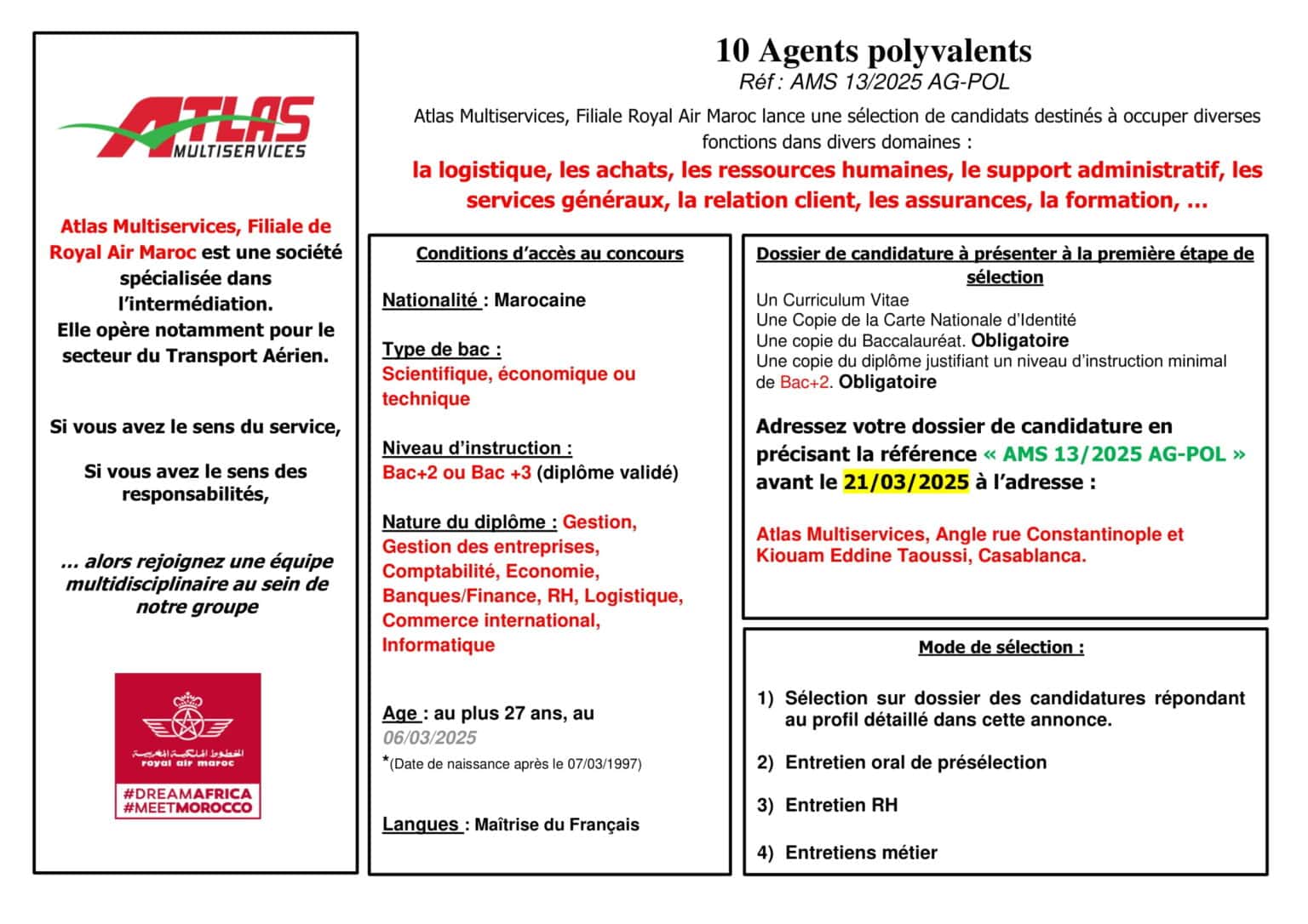 Atlas Multiservices recrutement 2025 : De nouvelles opportunités dans le transport aérien !