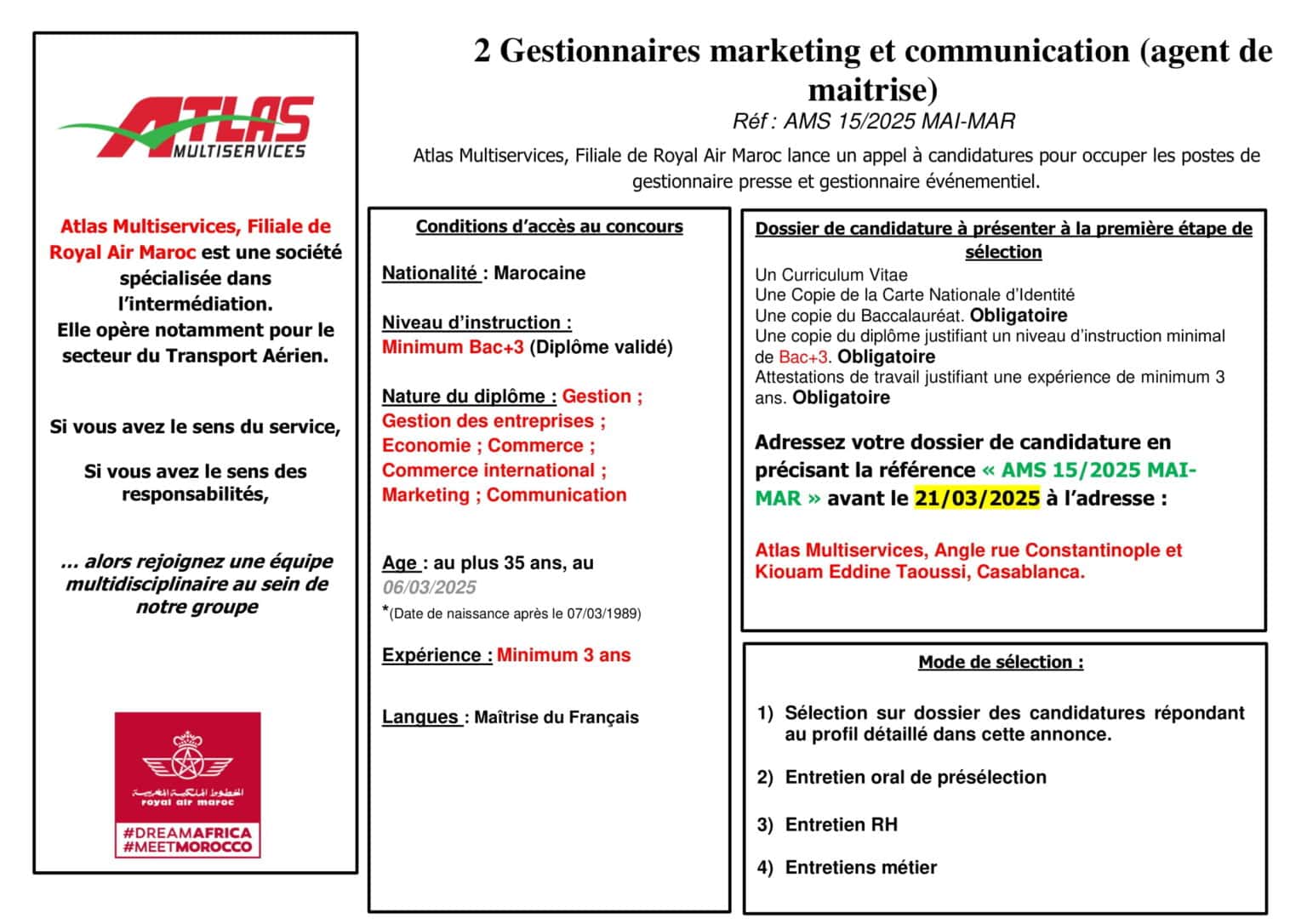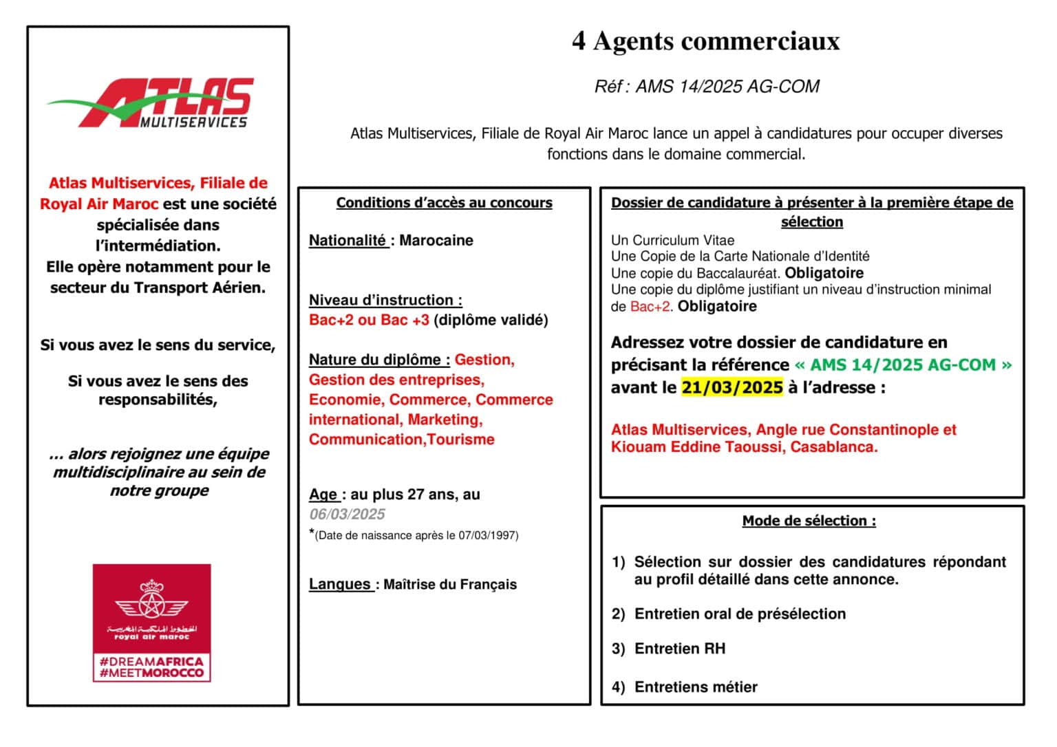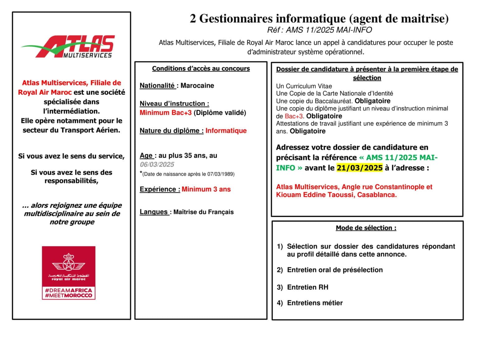 Atlas Multiservices recrutement 2025 : De nouvelles opportunités dans le transport aérien !