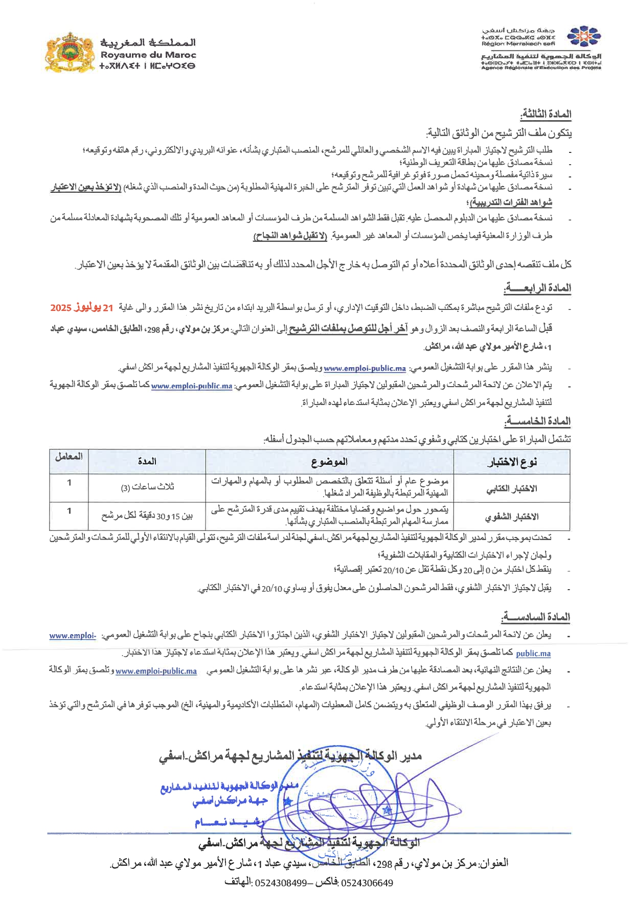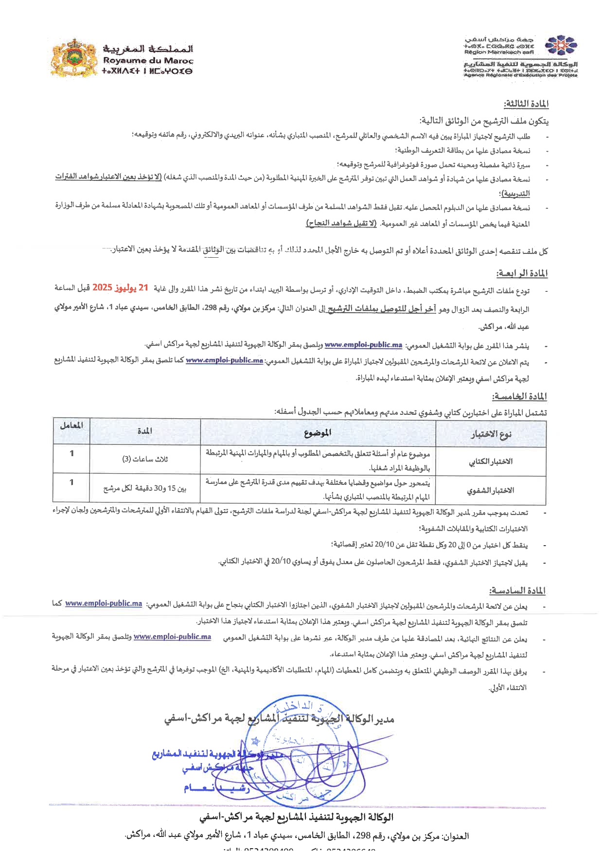 مباريات الوكالة الجهوية لتنفيذ المشاريع لجهة مراكش آسفي AREP 2025 (4 مناصب)