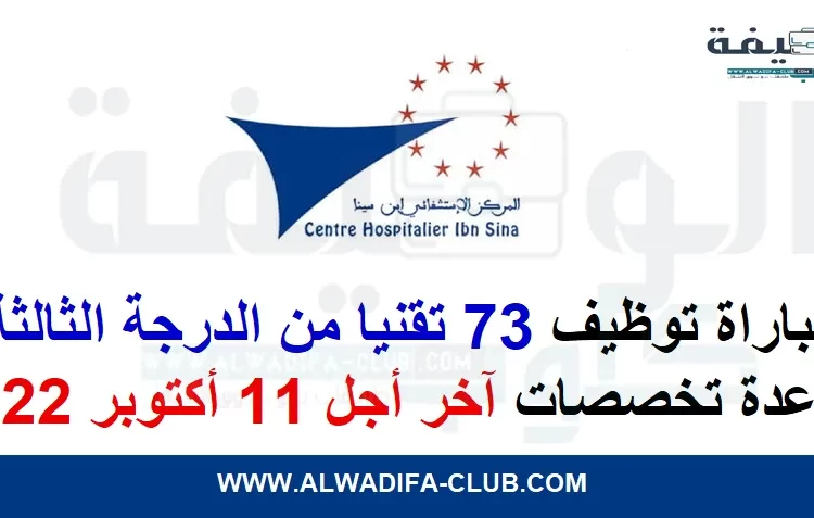 مباراة توظيف 73 تقنيا من الدرجة الثالثة في عدة تخصصات بالمركز الإستشفائي الجامعي ابن سينا الترشيح قبل 12 أكتوبر 2022.