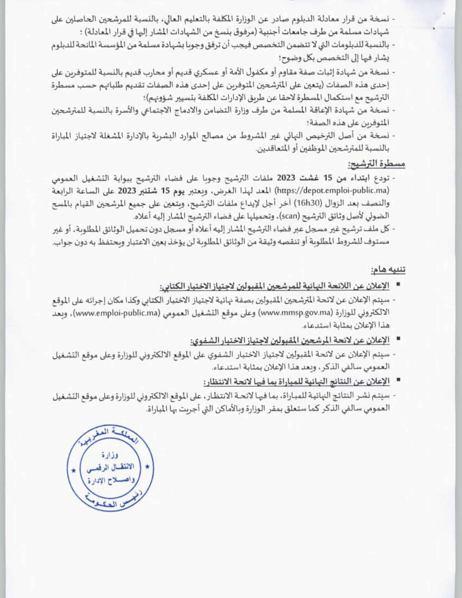 إقرأ أيضا: مباراة توظيف 400 منصب بوزارة الصحة والحماية الاجتماعية 2023