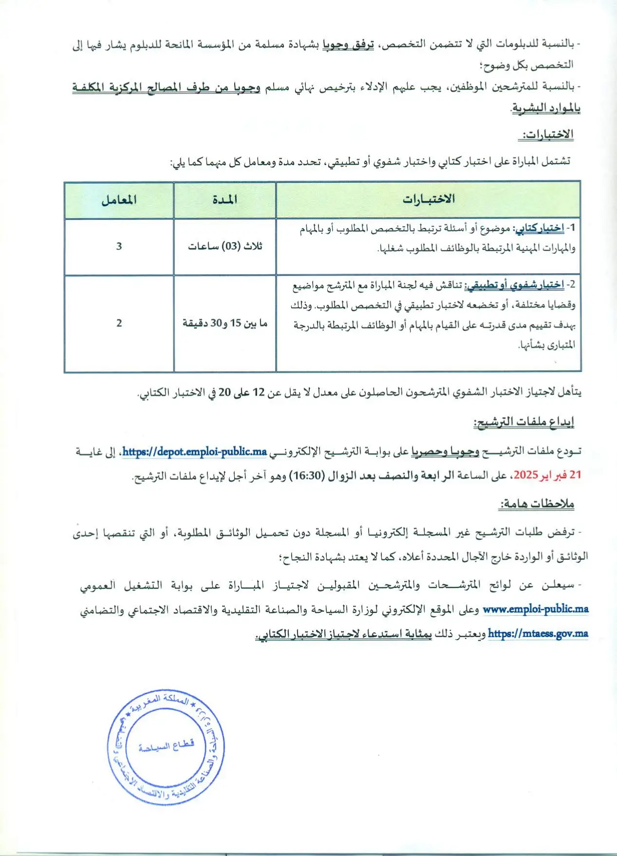 Lien version arabe : https://www.emploi-public.ma/ar/