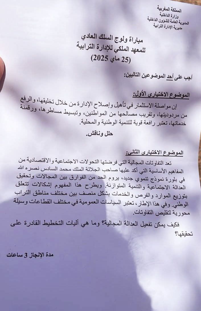 الاختبار الكتابي لمباراة القياد لولوج السلك العادي للمعهد الملكي للإدارة الترابية دورة 25 ماي 2025 الاختبار الكتابي لمباراة القياد دورة 25 ماي 2025 الاختبار الكتابي لمباراة القياد لولوج السلك العادي للمعهد الملكي للإدارة الترابية 2025