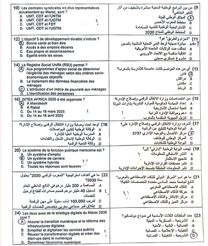 الاختبار الكتابي لمباراة توظيف متصرفين من الدرجة الثانية بوزارة الانتقال الرقمي وإصلاح الإدارة دورة 04 ماي 2025