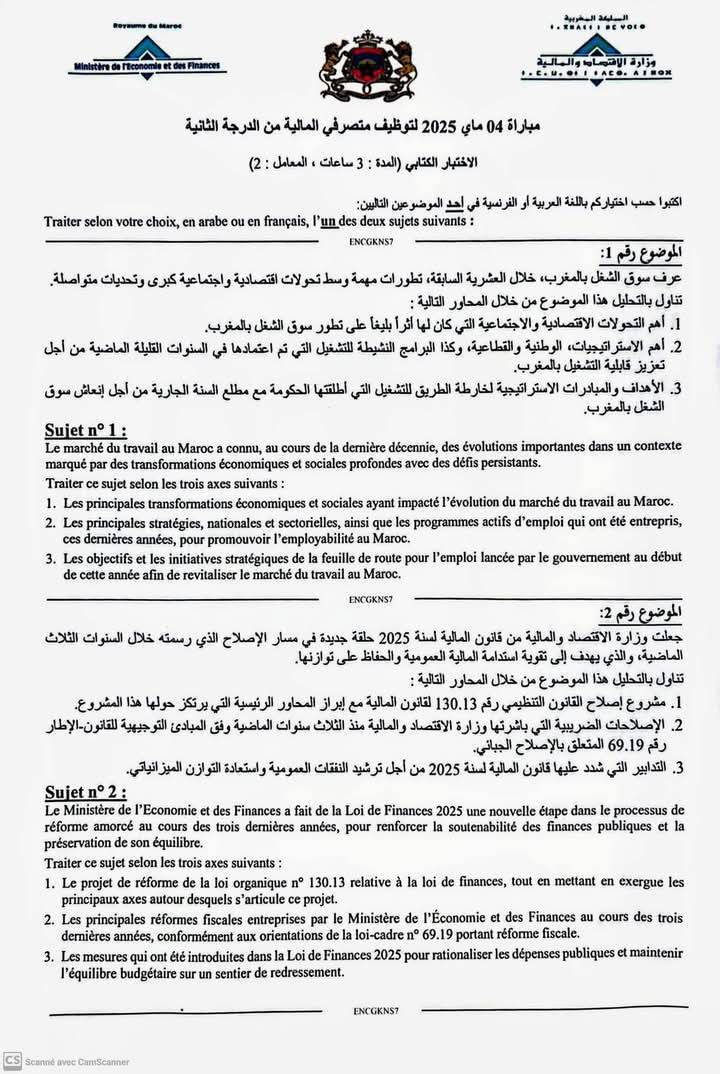 مباراة توظيف متصرفي المالية من الدرجة الثانية الاختبار الكتابي دورة 04 ماي 2025