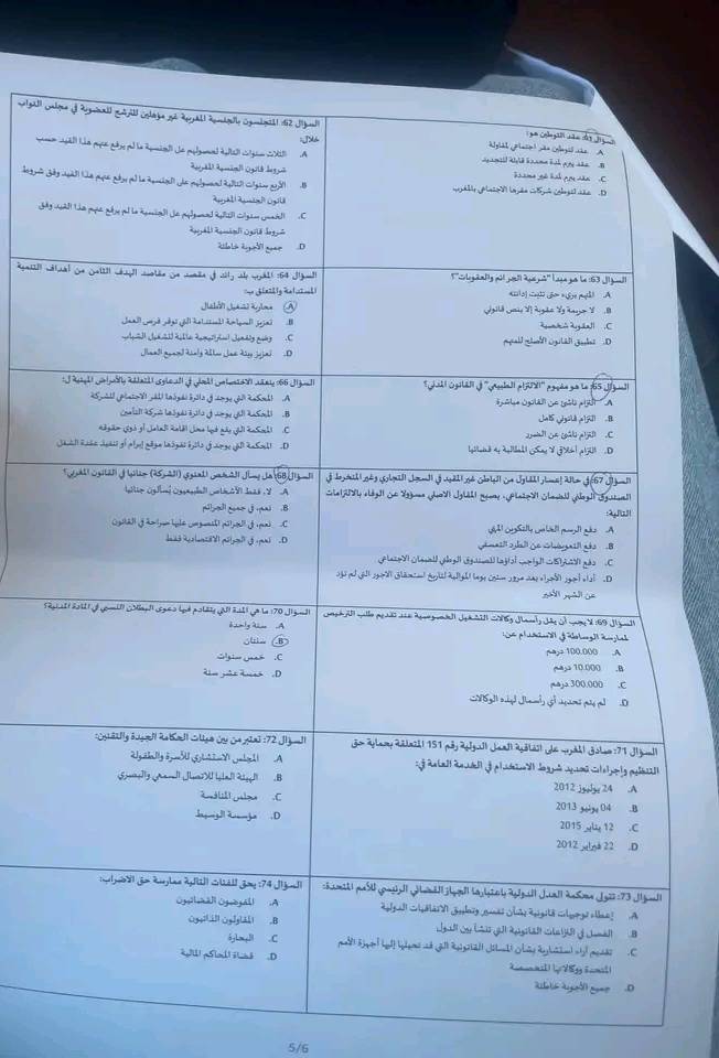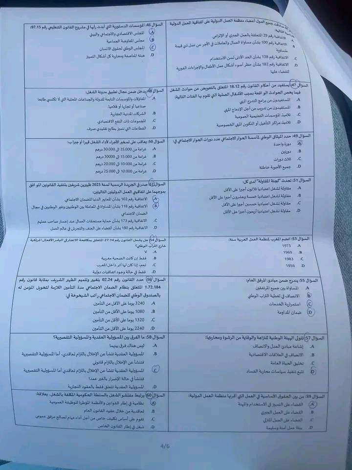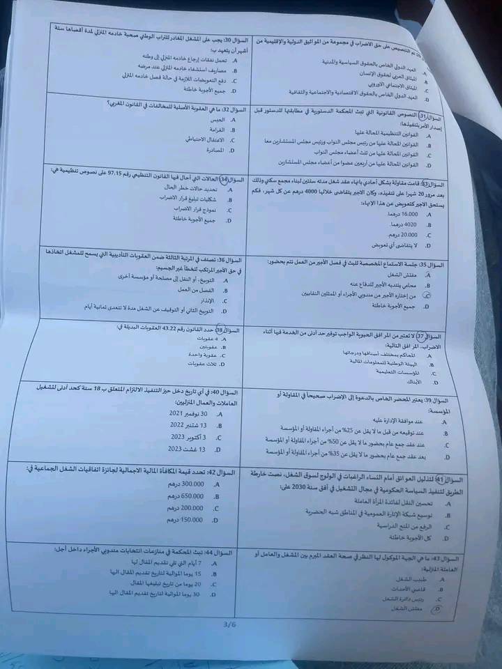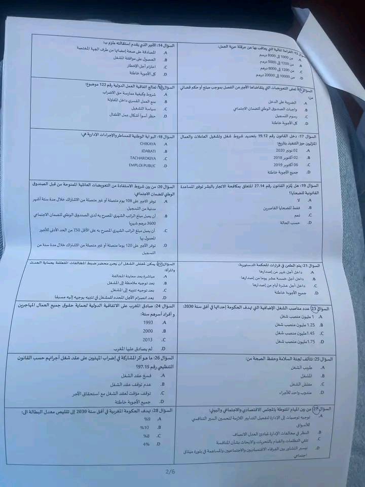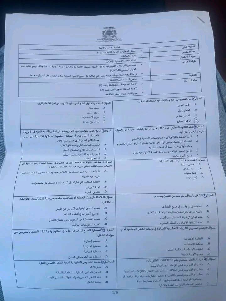 الاختبار الكتابي لمباراة توظيف مفتشي الشغل من الدرجة الثانية بوزارة الإدماج الاقتصادي والمقاولة الصغرى والتشغيل والكفاءات قطاع التشغيل دورة 10 ماي 2025