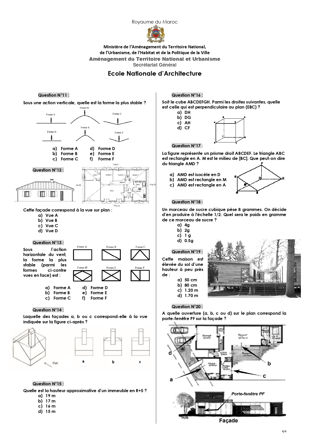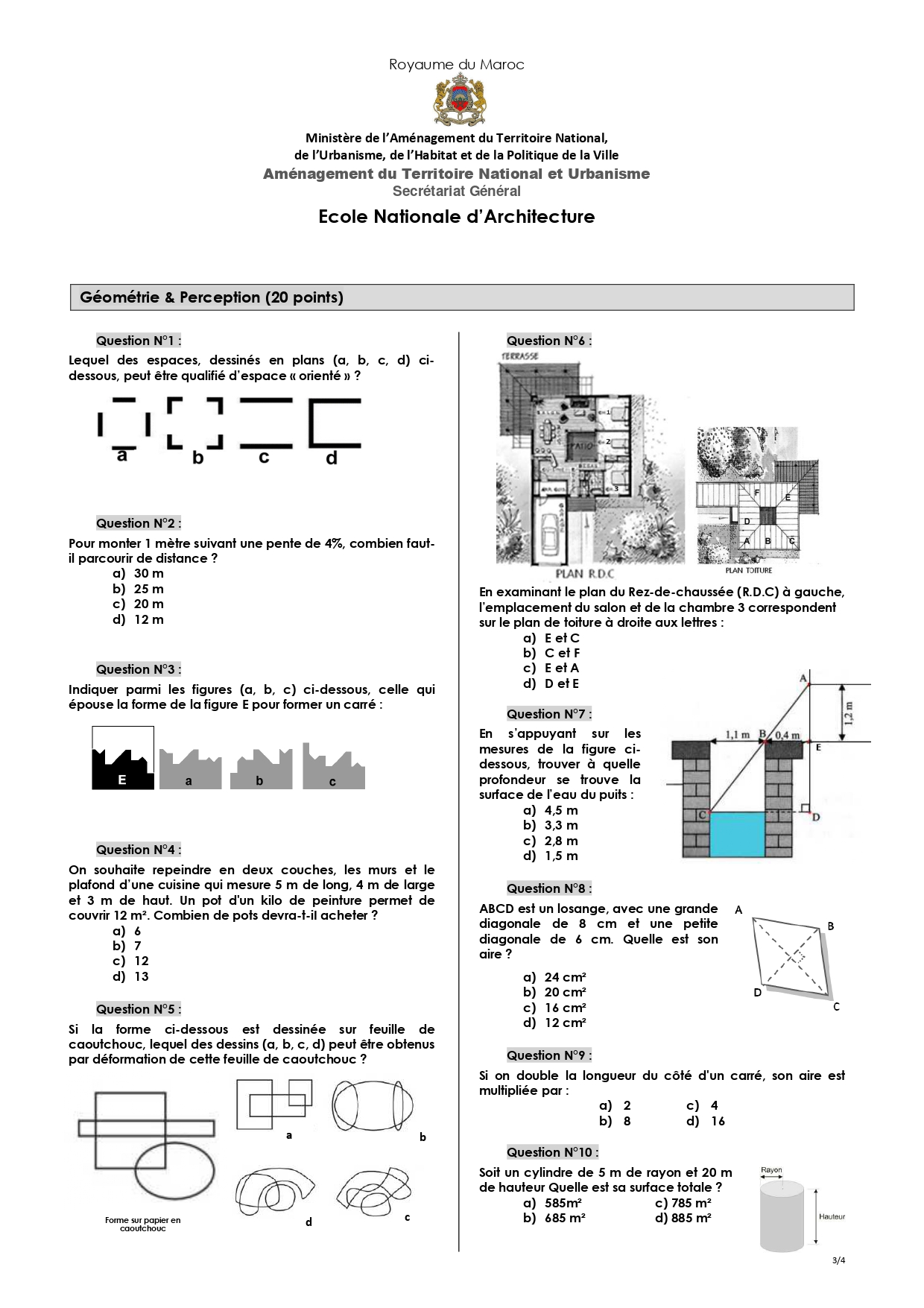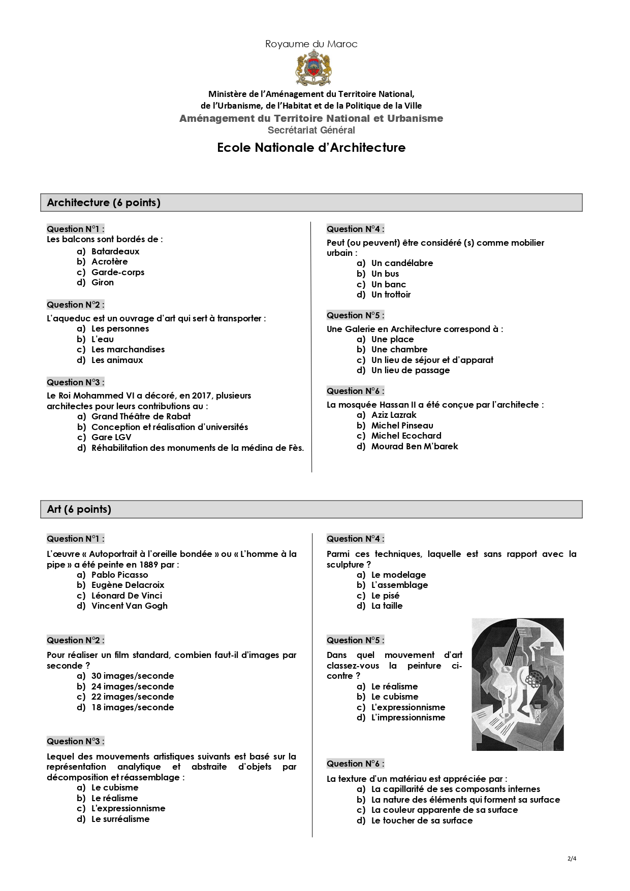 نماذج مباراة ولوج المدرسة الوطنية للهندسة المعمارية ENA