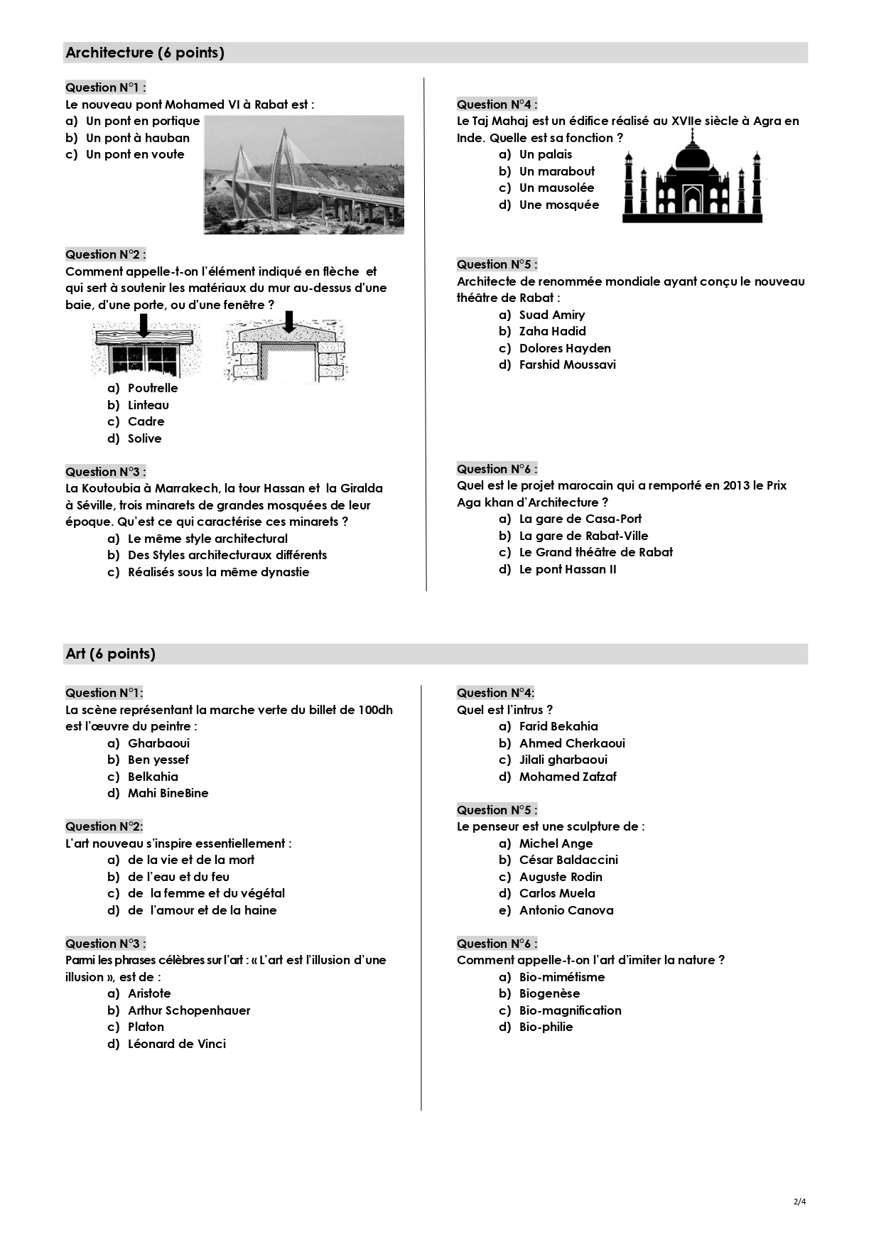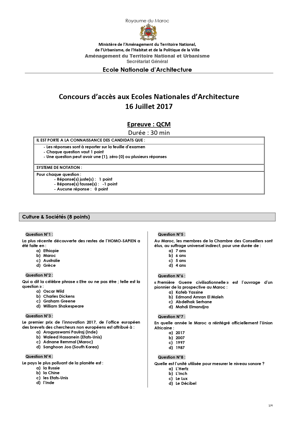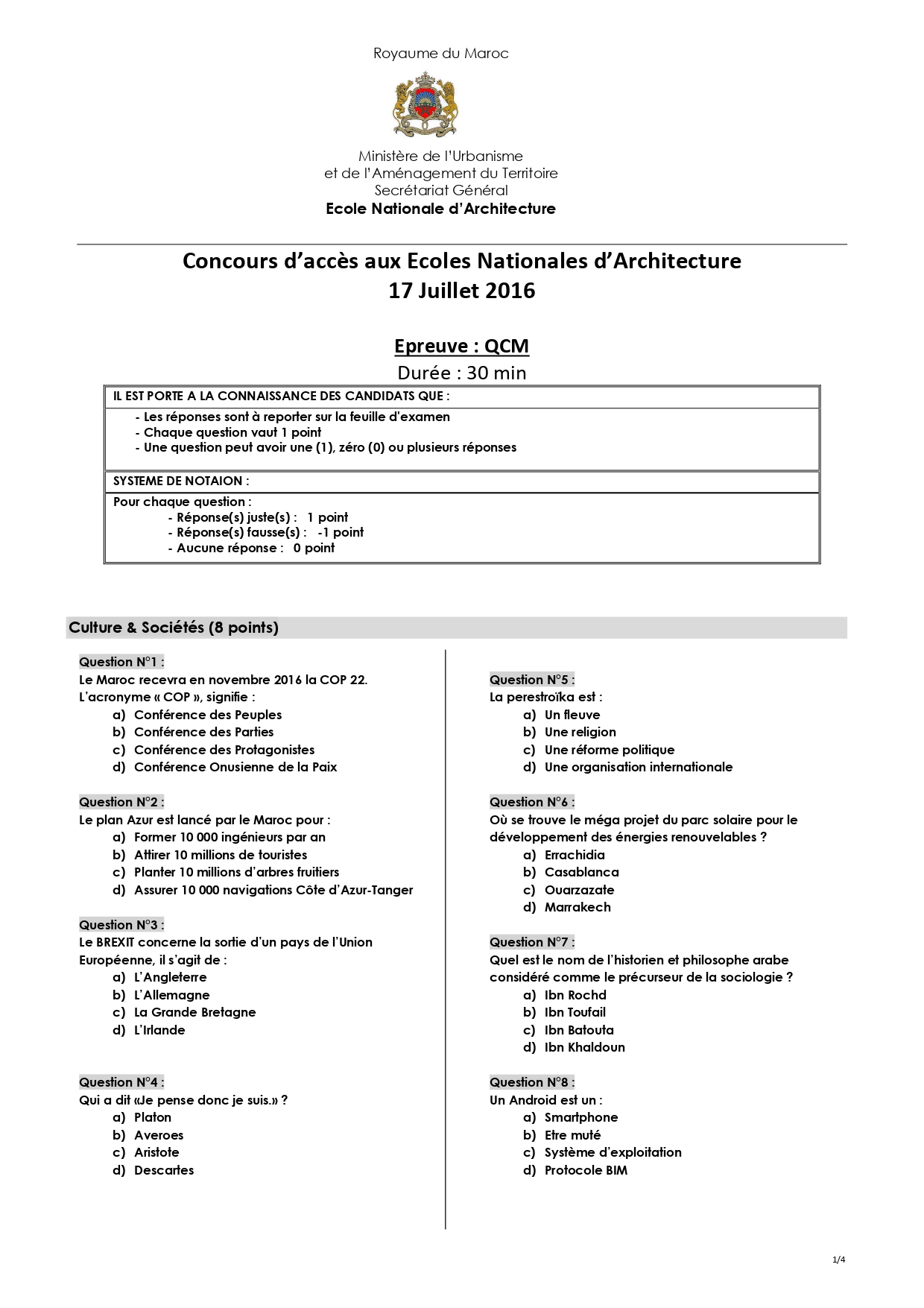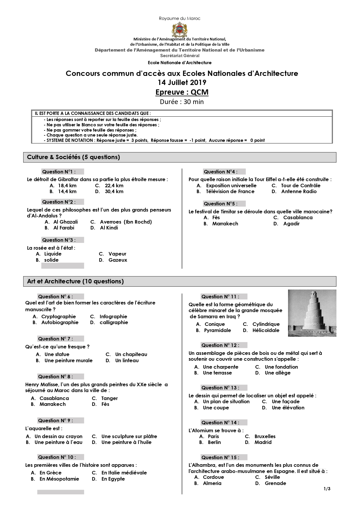 نماذج مباراة ولوج المدرسة الوطنية للهندسة المعمارية ENA