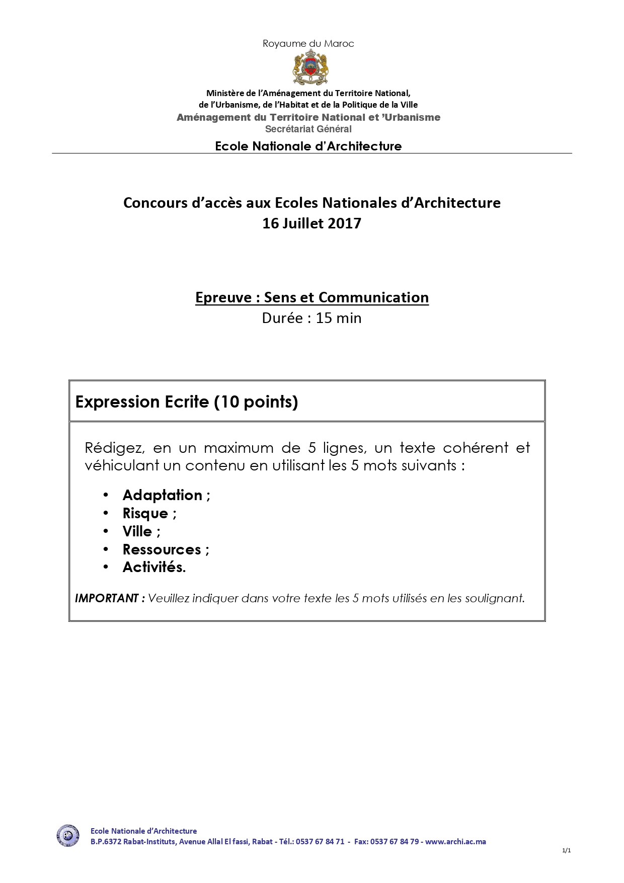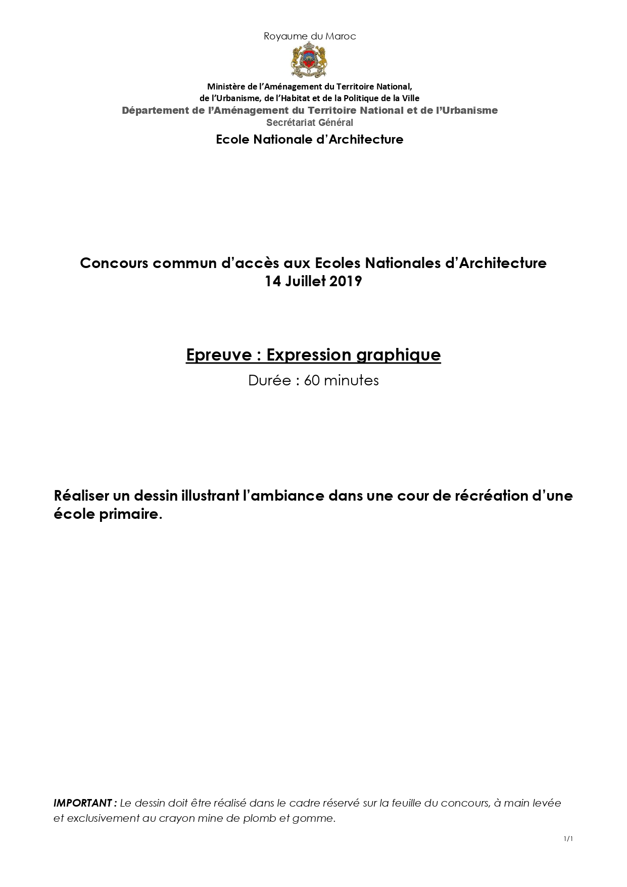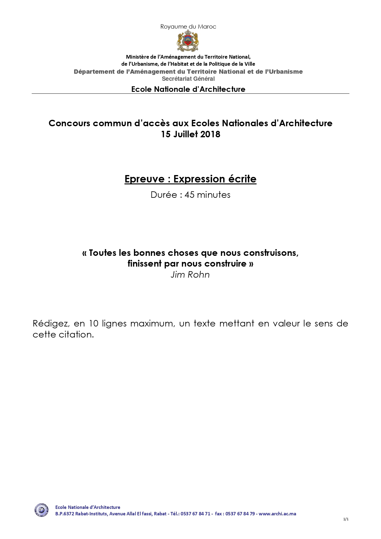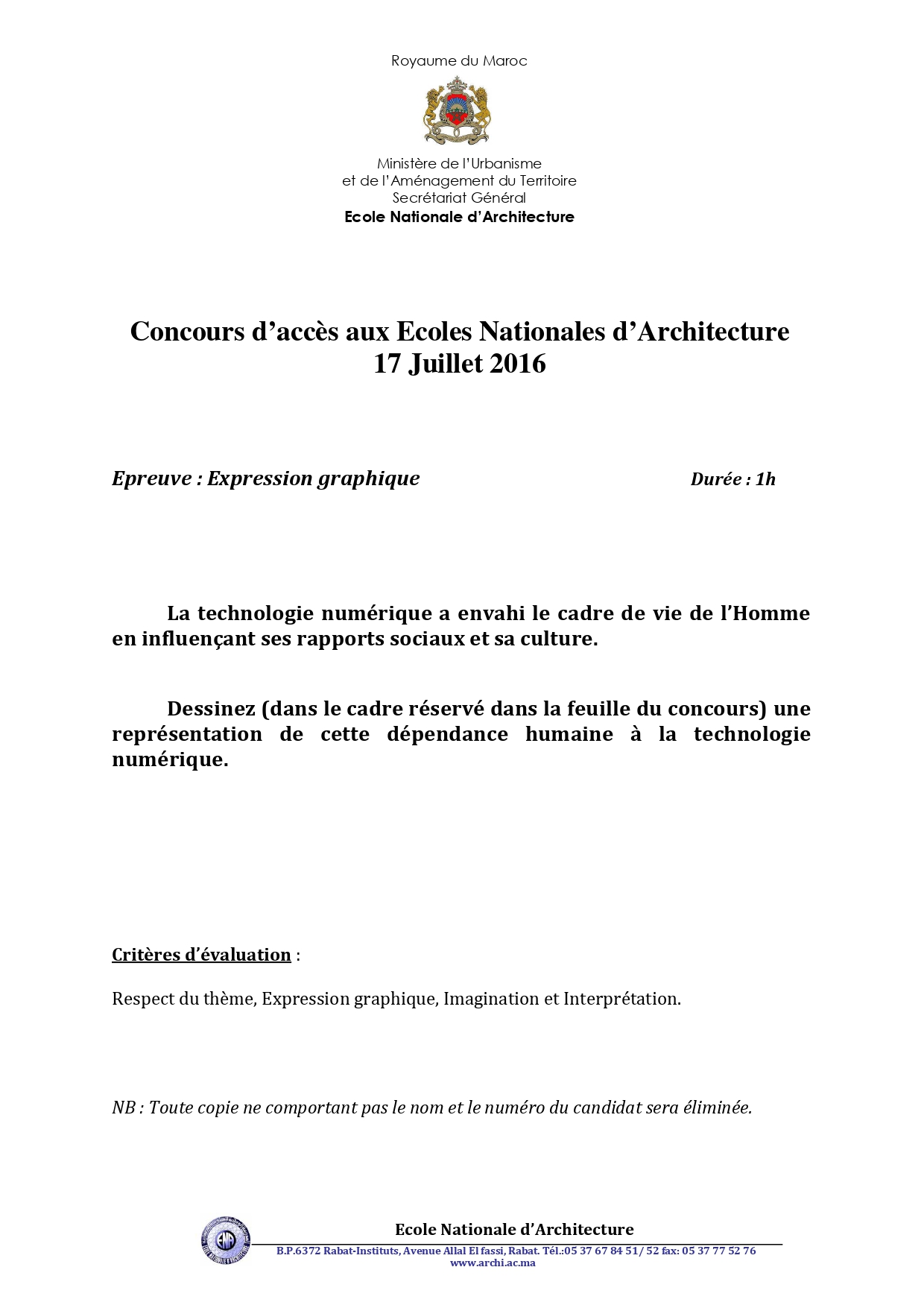 نماذج ولوج المدرسة الوطنية للهندسة المعمارية