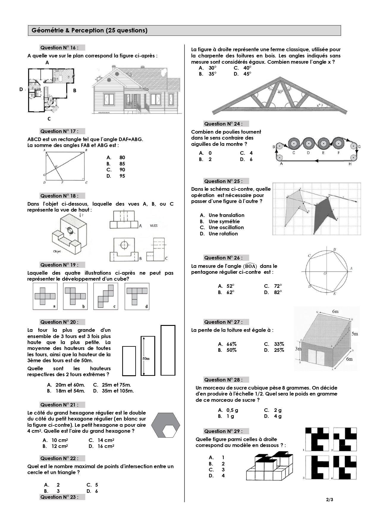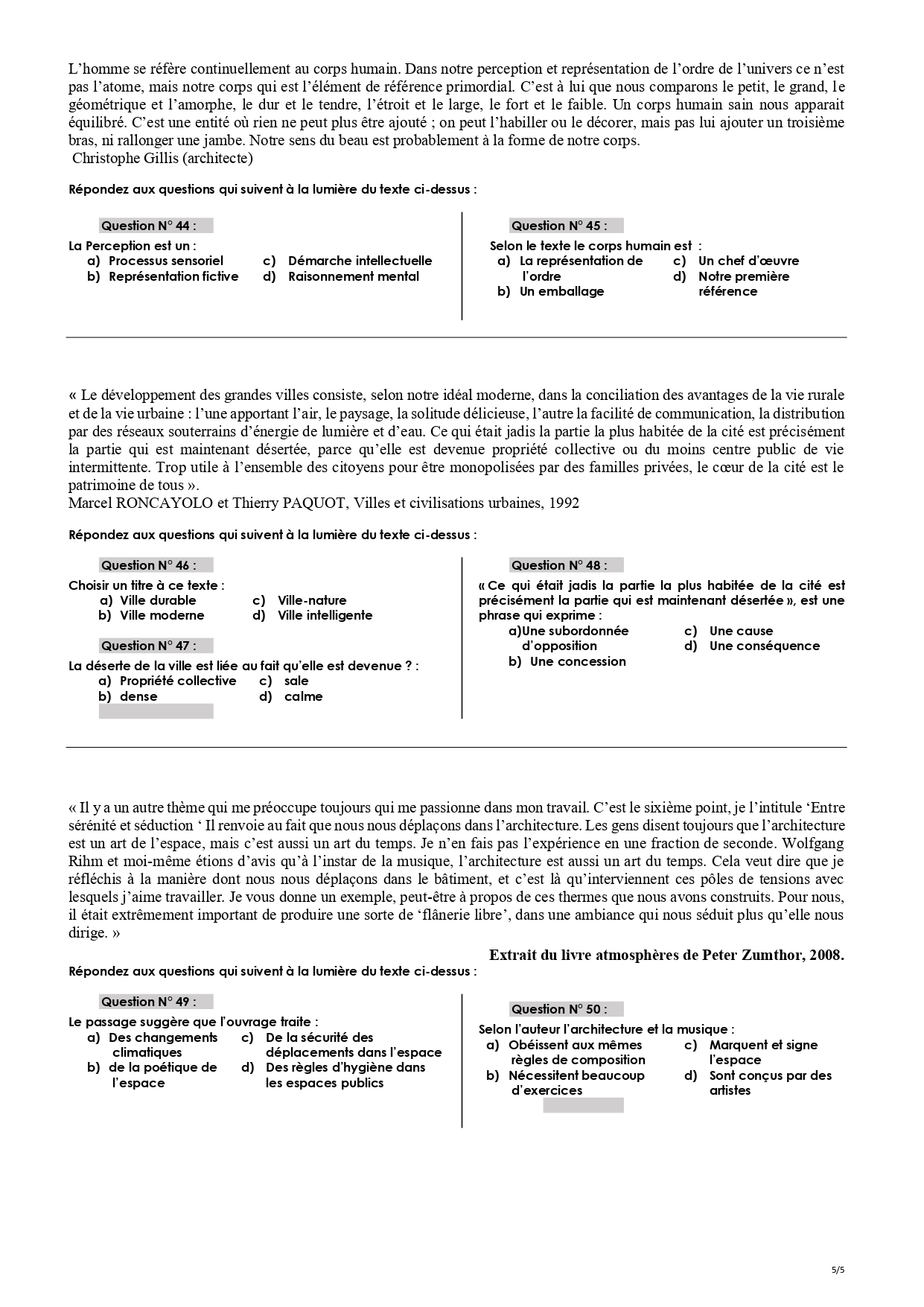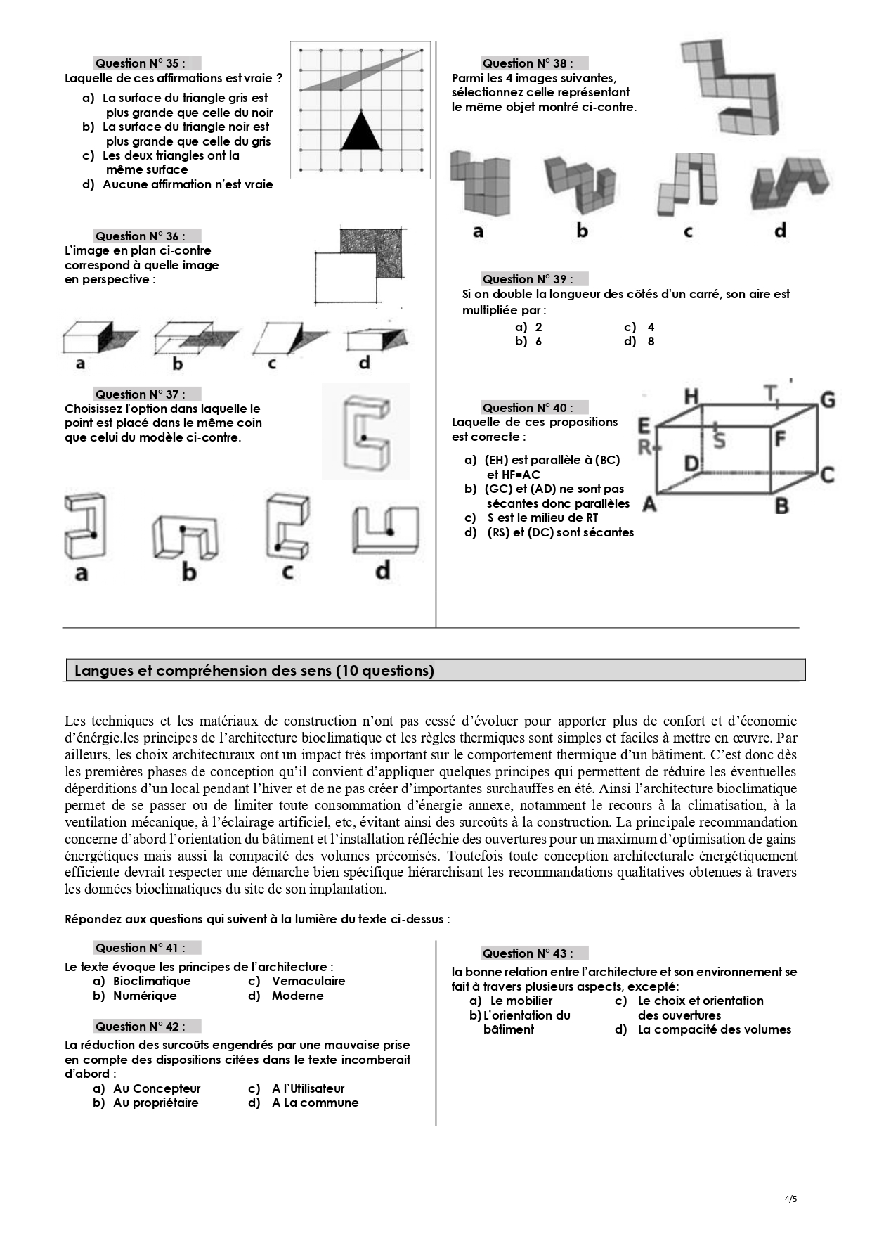 Les épreuves des concours précédents :