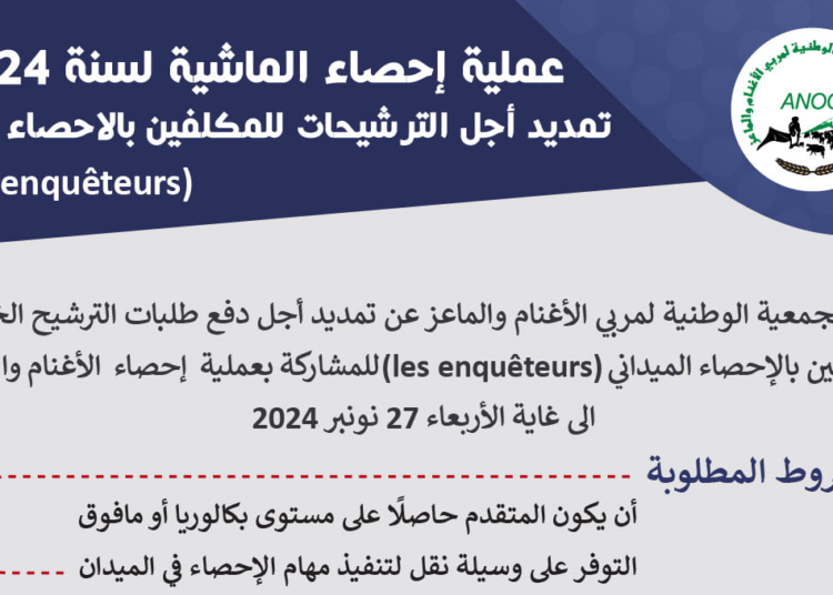 أنا مهتم بالمشاركة في هذا الإحصاء الذي يخص الماشية و أتوفر على كل الشروط المذكورة أعلاه