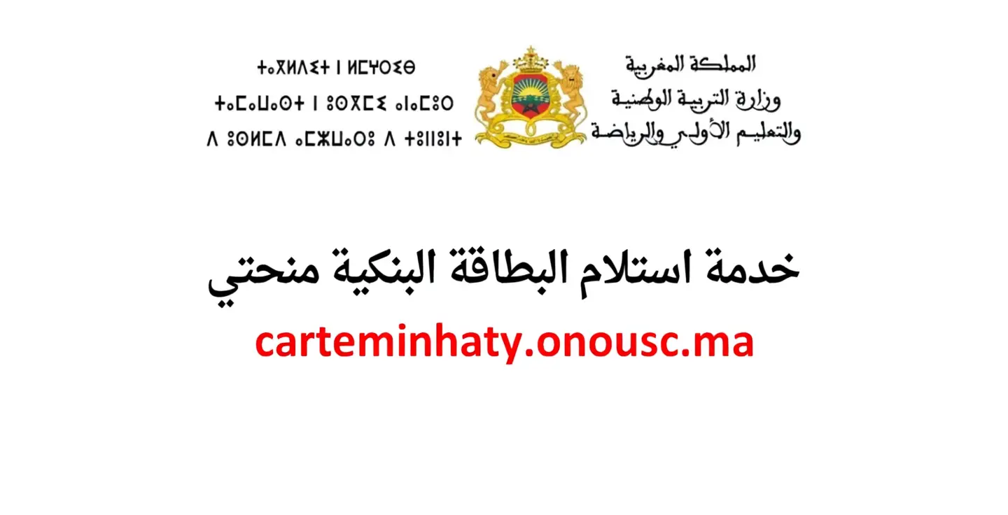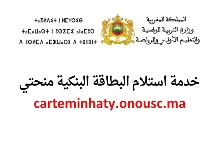 carteminhaty.onousc.ma أخذ موعد استلام البطاقة البنكية منحتي هي البوابة الرسمية لتمكين الطلبة الممنوحين من اختيار مكان و تاريخ استلام بطائقهم البنكية carteminhaty onousc ma منحتي عبر الوكالات التابعة للبريد بنك. carte minhaty rendez-vous 2026 أخذ موعد بطاقة منحتي للطلبة الجدد المعنيين بالاستفادة من المنحة الجامعية.