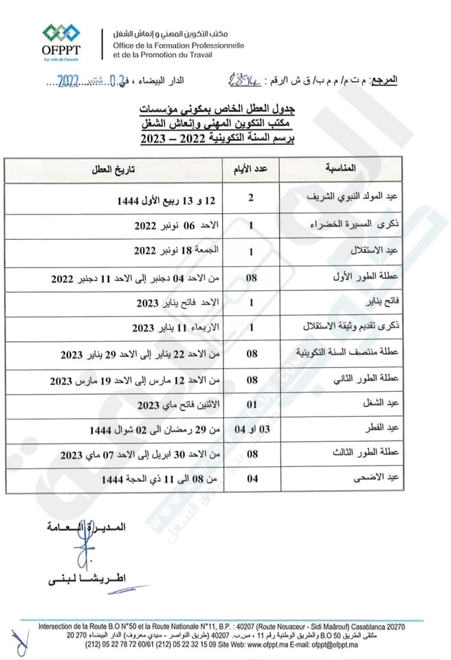 لائحة عطل التكوين المهني 2022-2023 الرسمية: