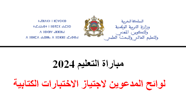 لوائح المدعوين لاجتياز الاختبارات الكتابية لمباراة التعليم 2024، سيتم الاعلان عن نتائج الانتقاء الأولي ولوائح المدعوين لاجتياز الاختبارات الكتابية لمباراة التعليم 2024 يوم الثلاثاء 01 اكتوبر 2024.