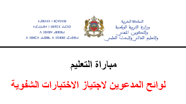 نتائج مباراة التعليم 2025 الاعلان عن نتائج كتابي مباراة التعليم 2025 ولوائح المدعوين لاجتياز الاختبارات الشفوية لمباراة التعليم 2025 يوم الجمعة 24 يناير 2025.