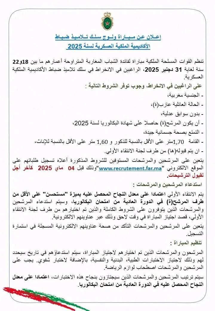 مباراة ولوج الأكاديمية العسكرية بمكناس ذكورا وإناثا 2025.
