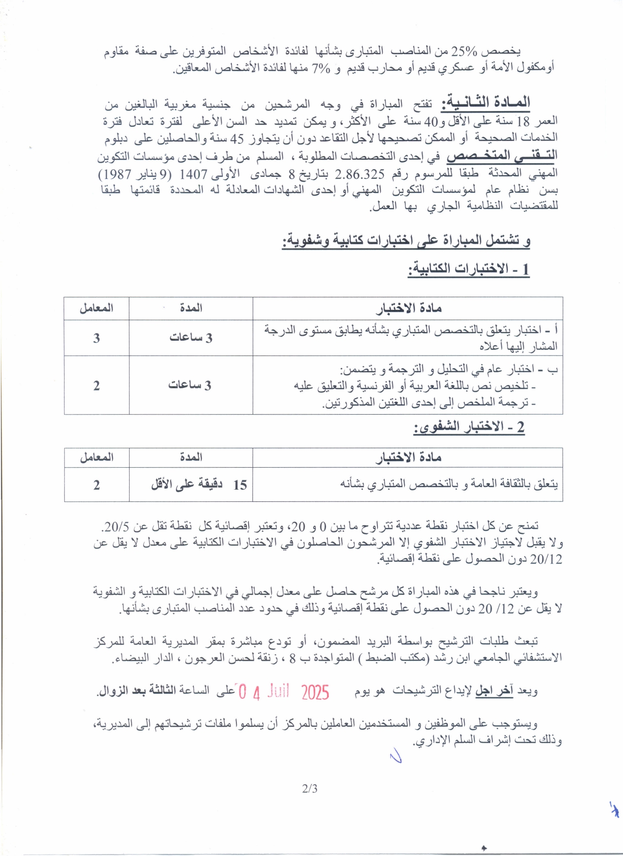 مباريات CHU ابن رشد 2025 (85 منصبًا)