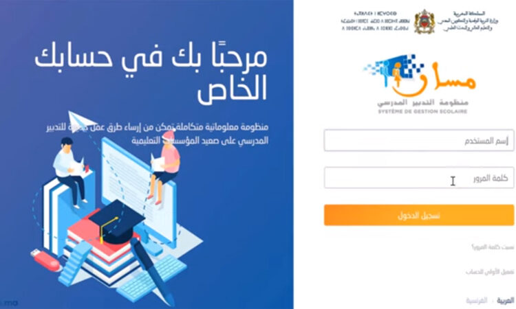 Massar Service 2024 هو الفضاء الخاص بأمهات وآباء وأولياء التلميذات والتلاميذ الفضاء الخاص بالتلميذات والتلاميذ تسجيل الدخول والإطلاع على النقط نتائج الإمتحانات ونتائج الفروض والمراقبة المستمرة 2024 massarservice.men.gov.ma.